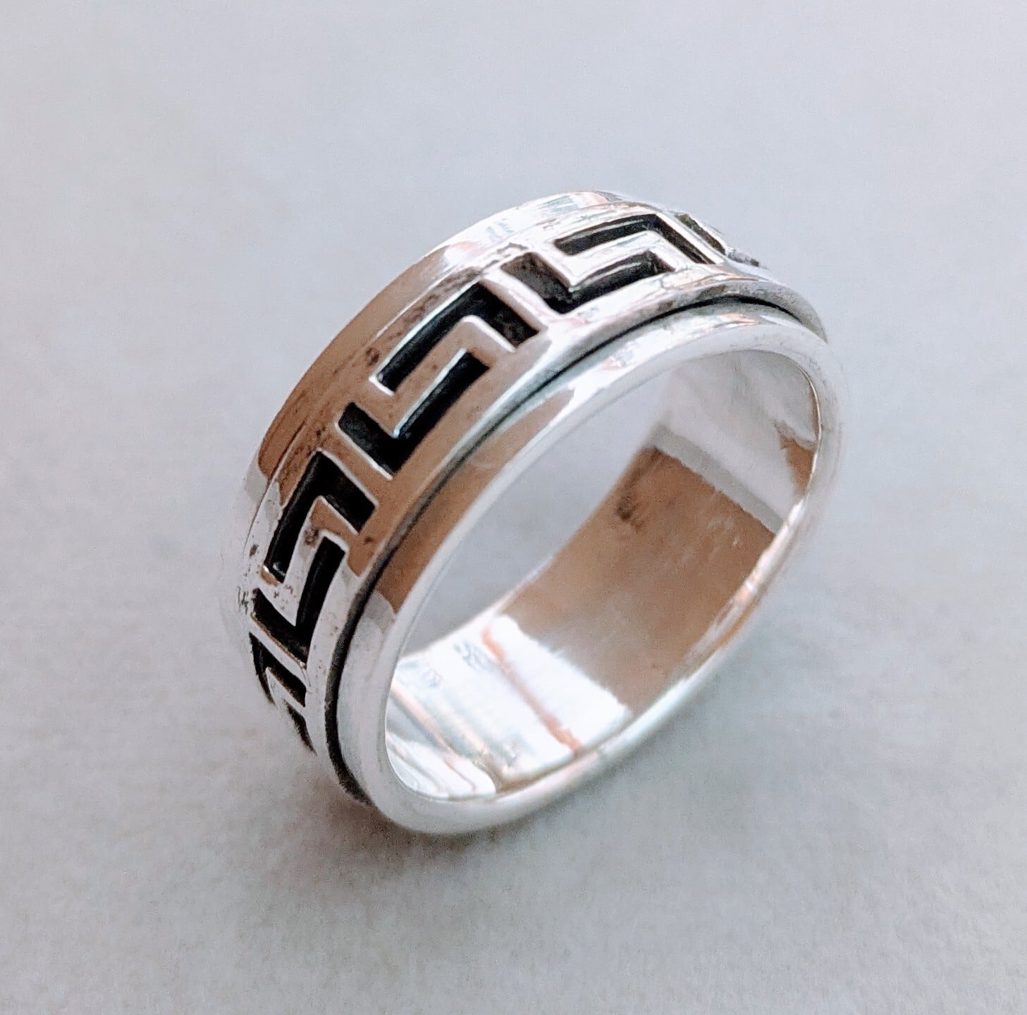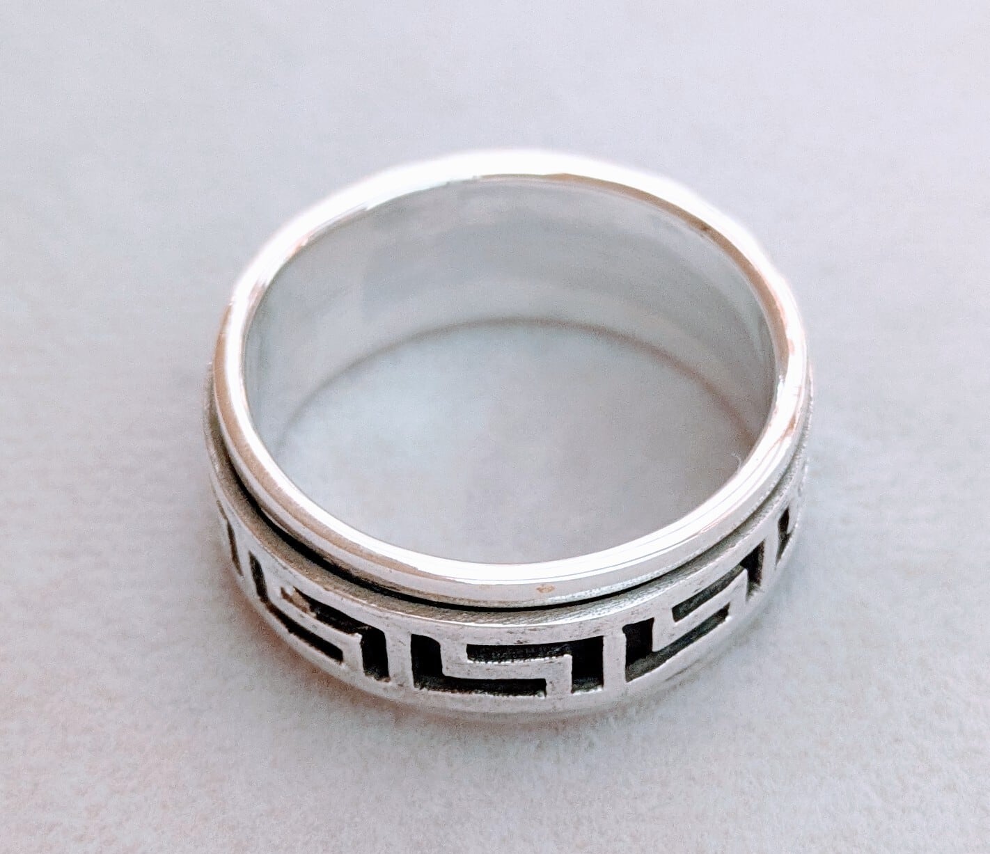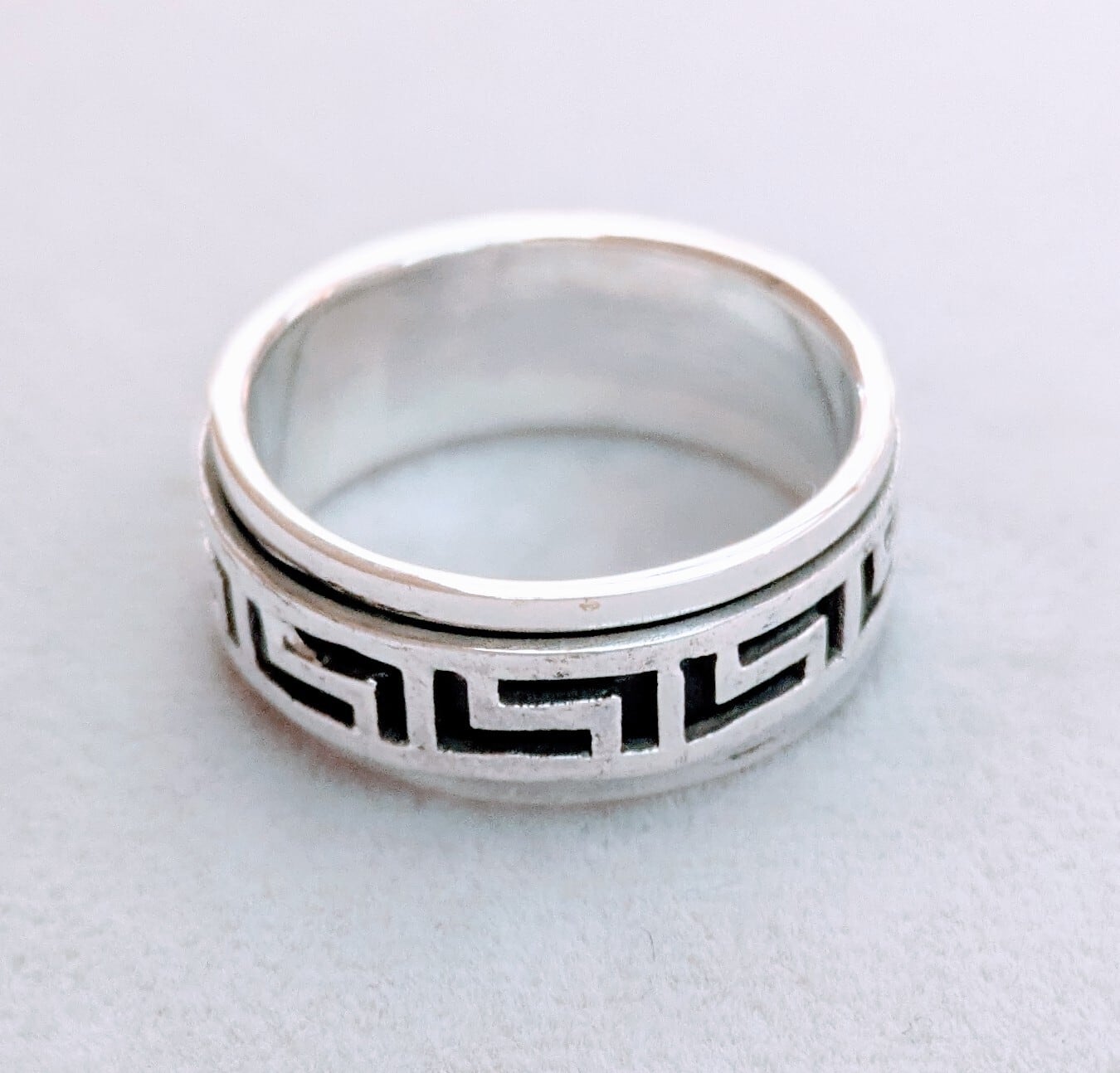 モチーフは「人生の川」と言われる健康や長寿を意味するシンプルなデザインですが、リング部分が二重になっておりお着けいただいた状態で上部(内側となるモチーフ部分)をクルッと回転させることが出来るユニークな作りになのです。