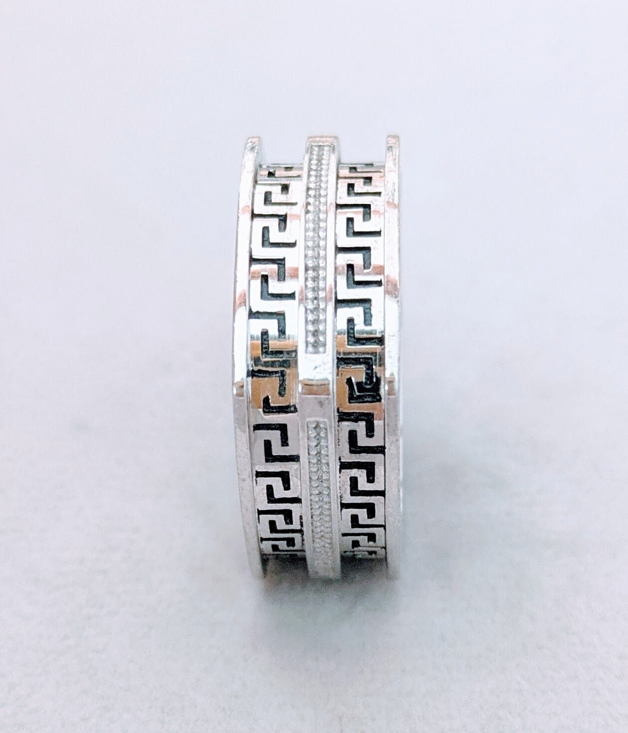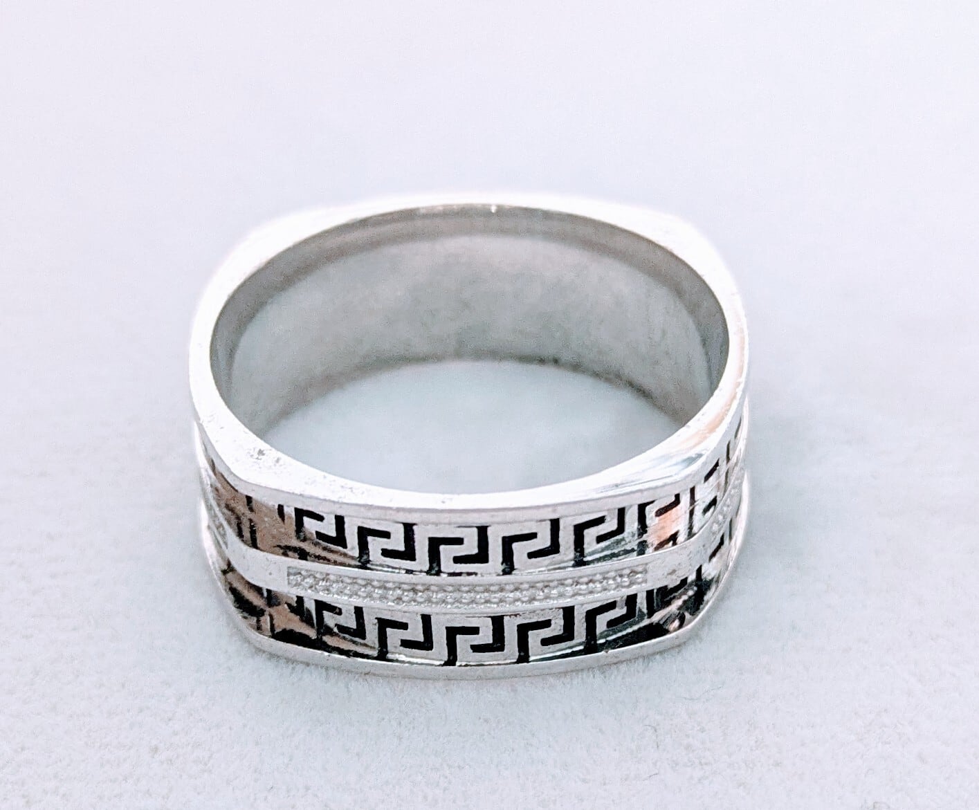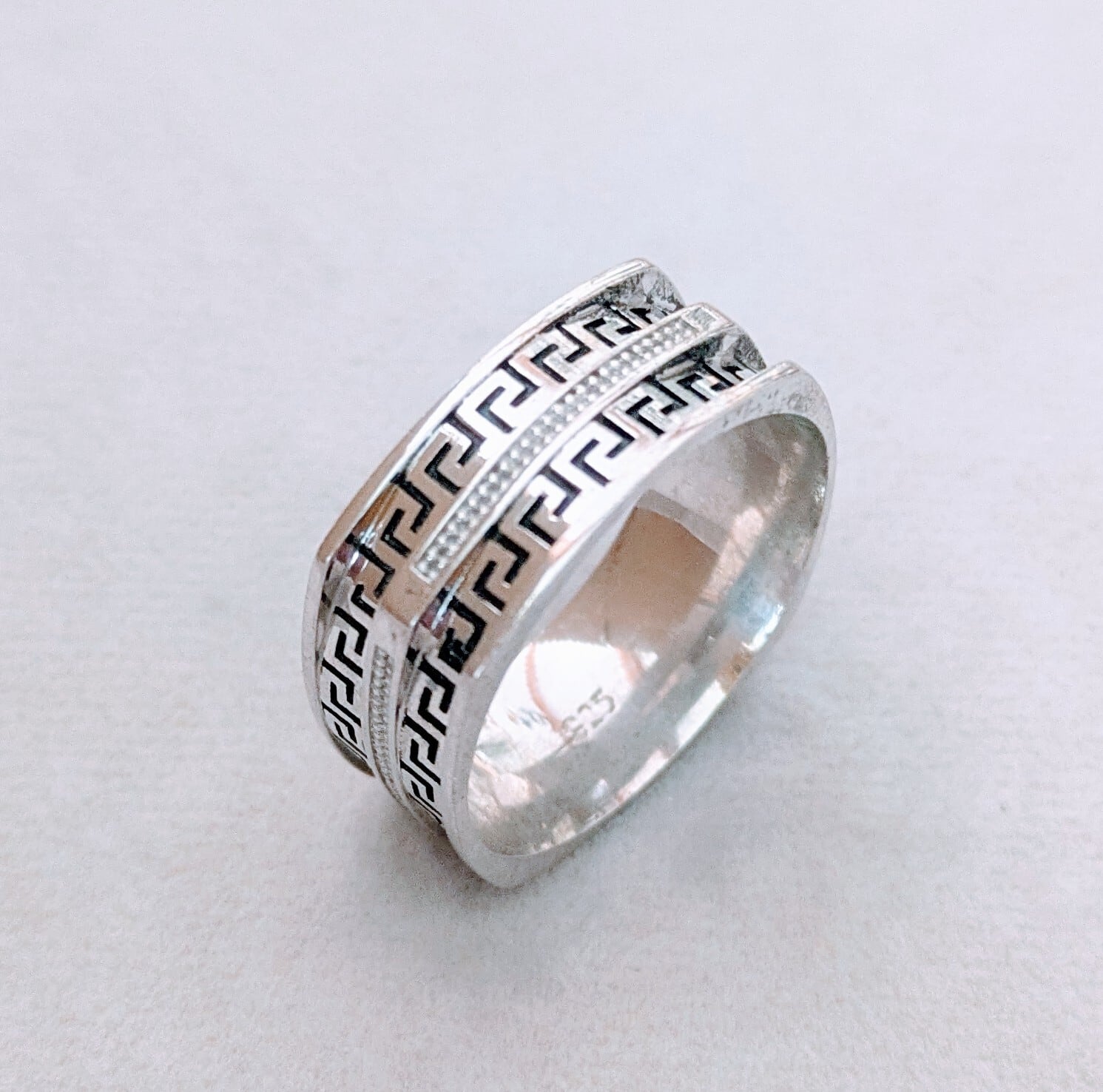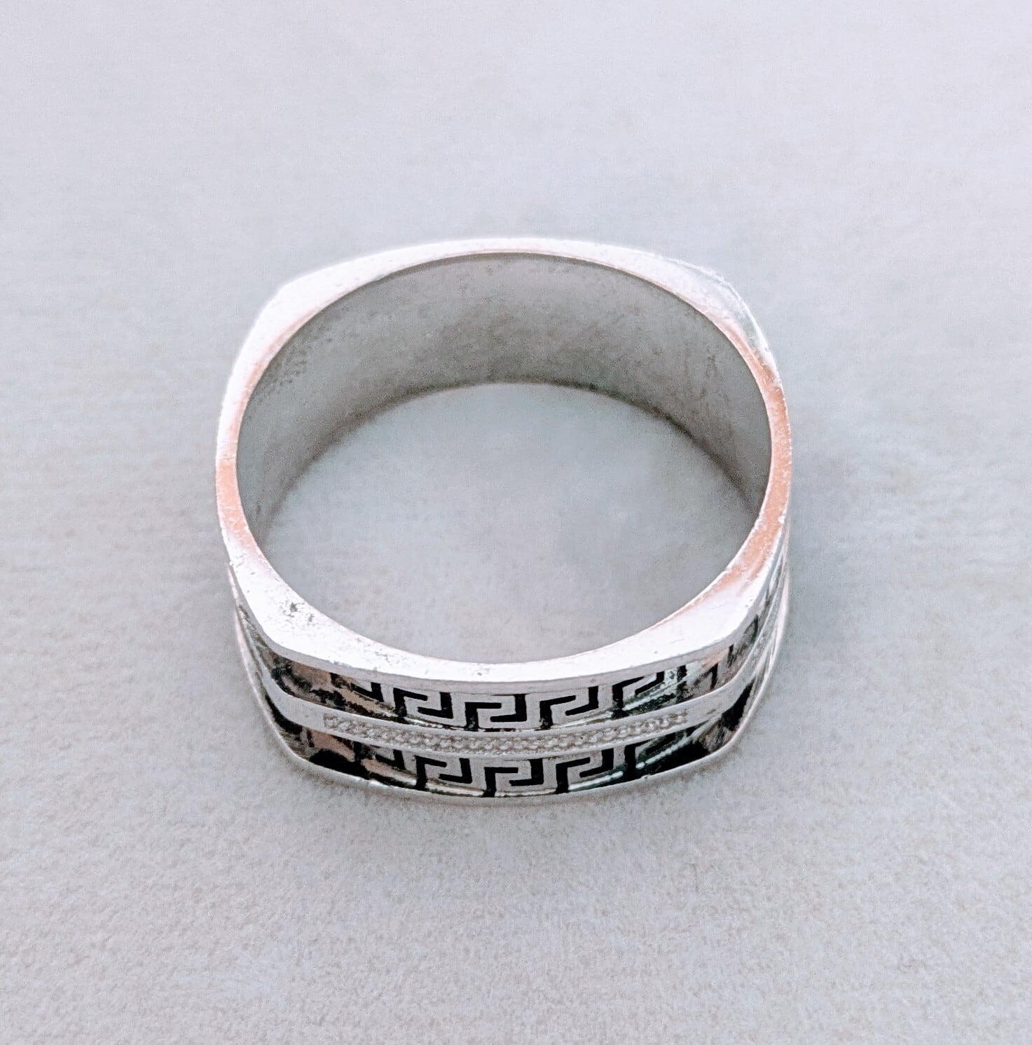 モチーフは「人生の川」と言われる健康や長寿を意味するシンプルなデザインですが、3枚目の画像のとおりスクエアタイプのリングになっています。