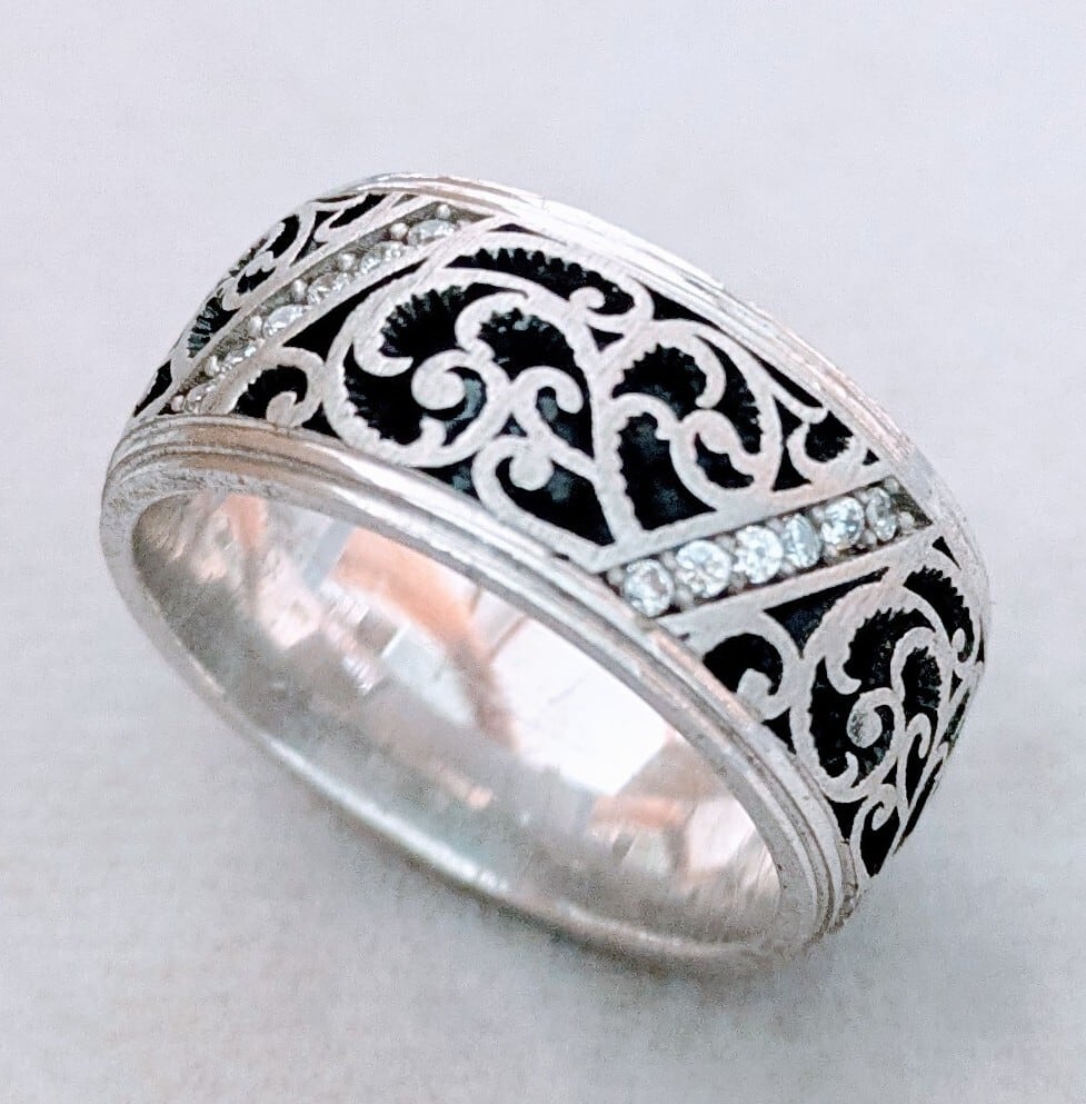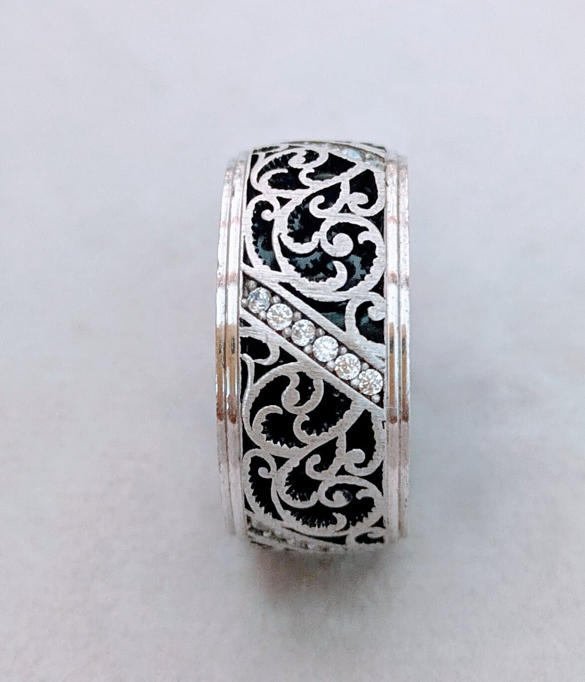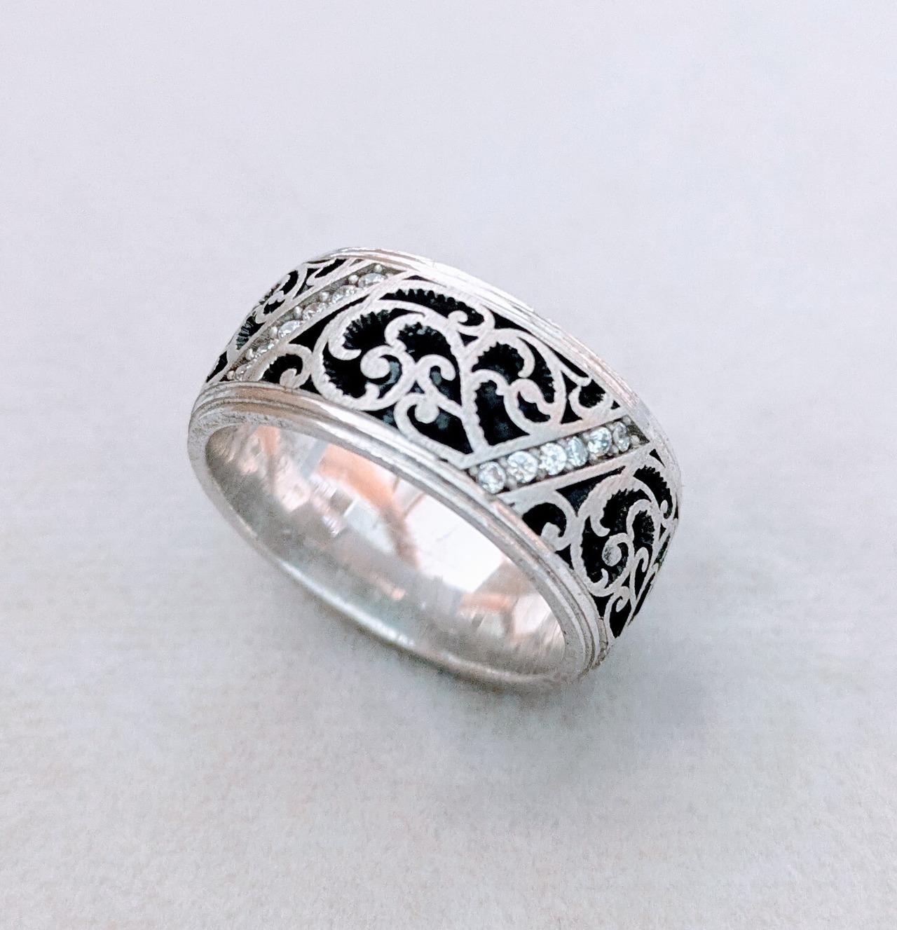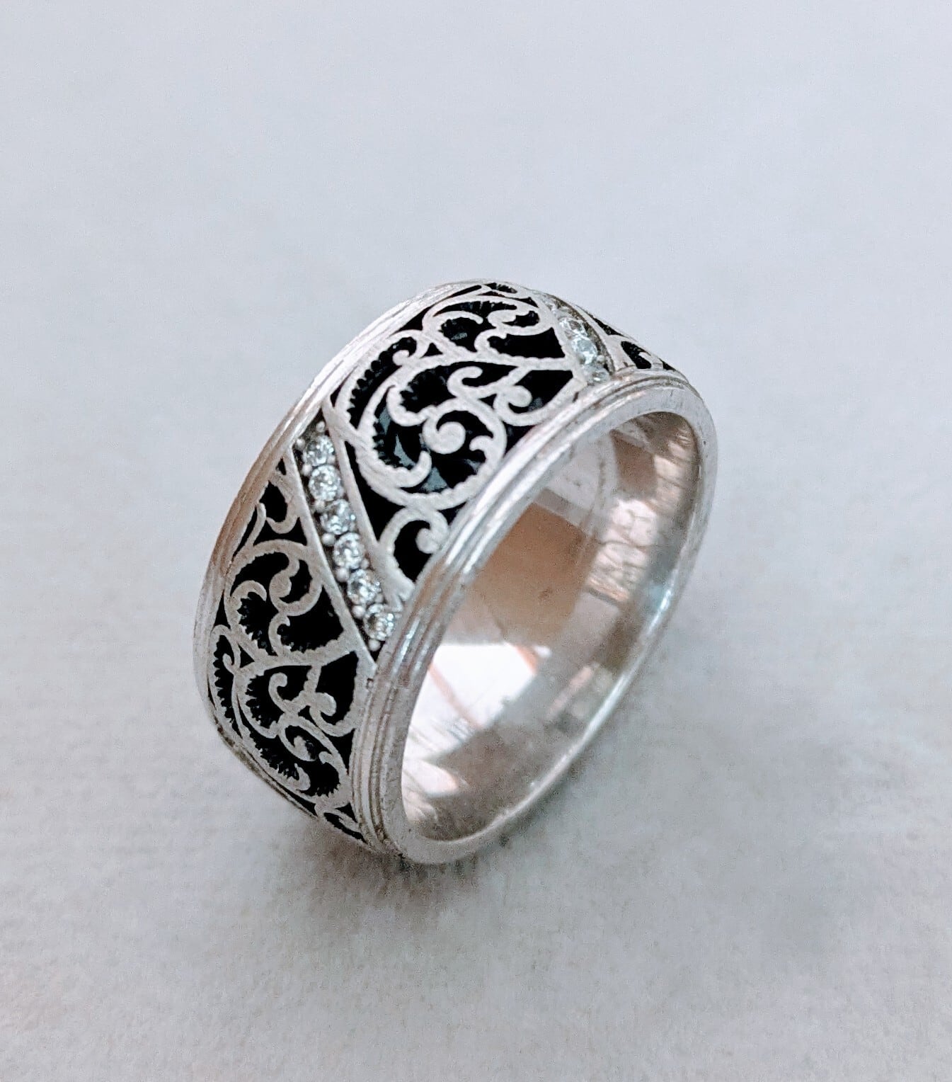 モチーフはルーミと呼ばれる「植物で永遠をあらわす」でシンプルなデザインにジルコニアが上品に輝き、どんなファッションでもお着けいただけるスタイルになっています。