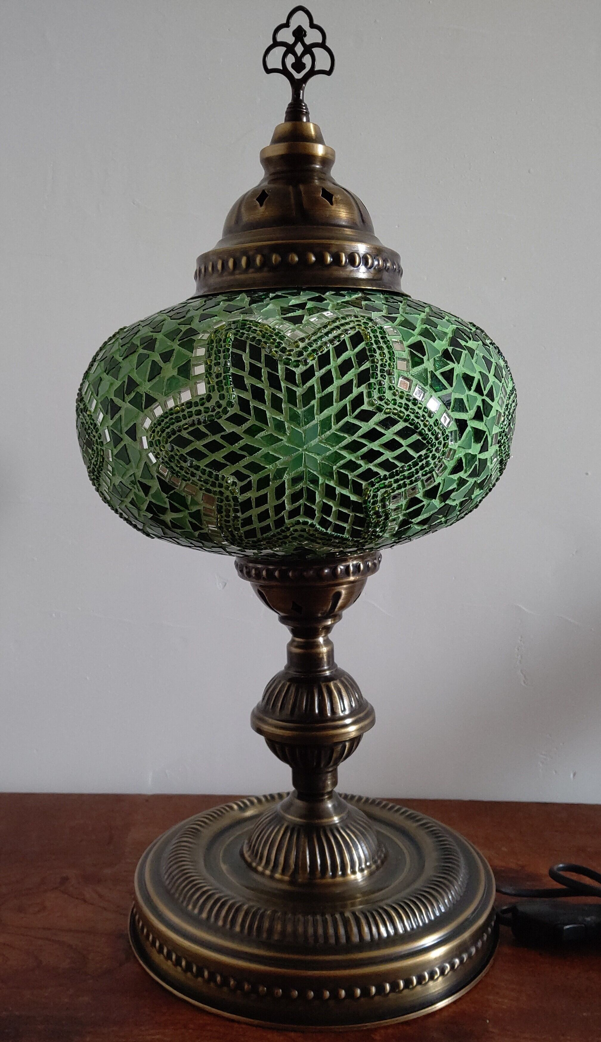 トルコ人女性のモザイクランプ作家さんが心を込めて制作した、ハンドメイドのスタンドタイプのランプです。