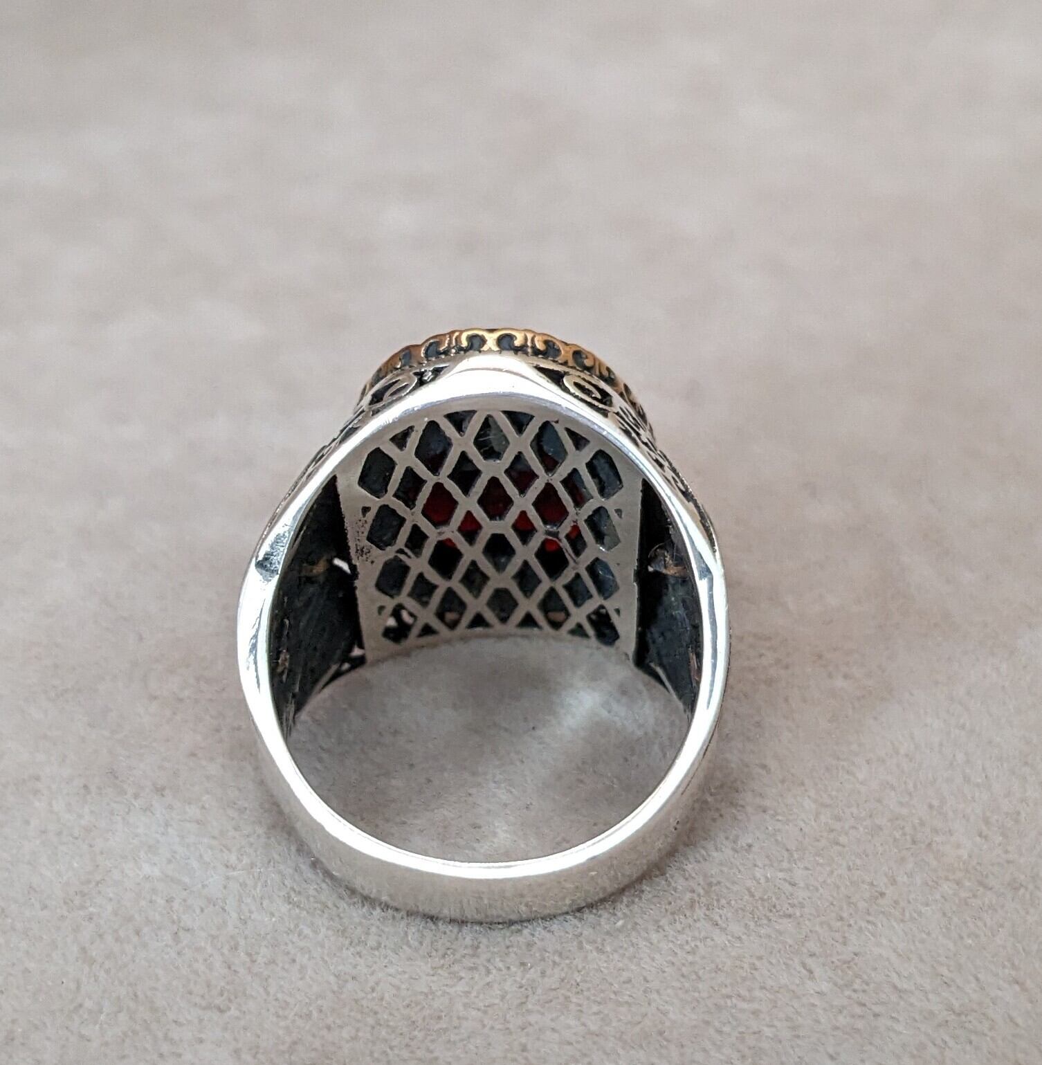 トップ部分には天然石の瑪瑙(メノウ)をベースとして『月&星』でトルコ国旗を表現し、両脇にはチューリップのモチーフと小さなオニキスの粒を埋め込んだボリュームも存在感も十分にあり、シルバーとゴールド、天然石の組み合わせがとてもカッコいいボリュームリングに仕上がっています。