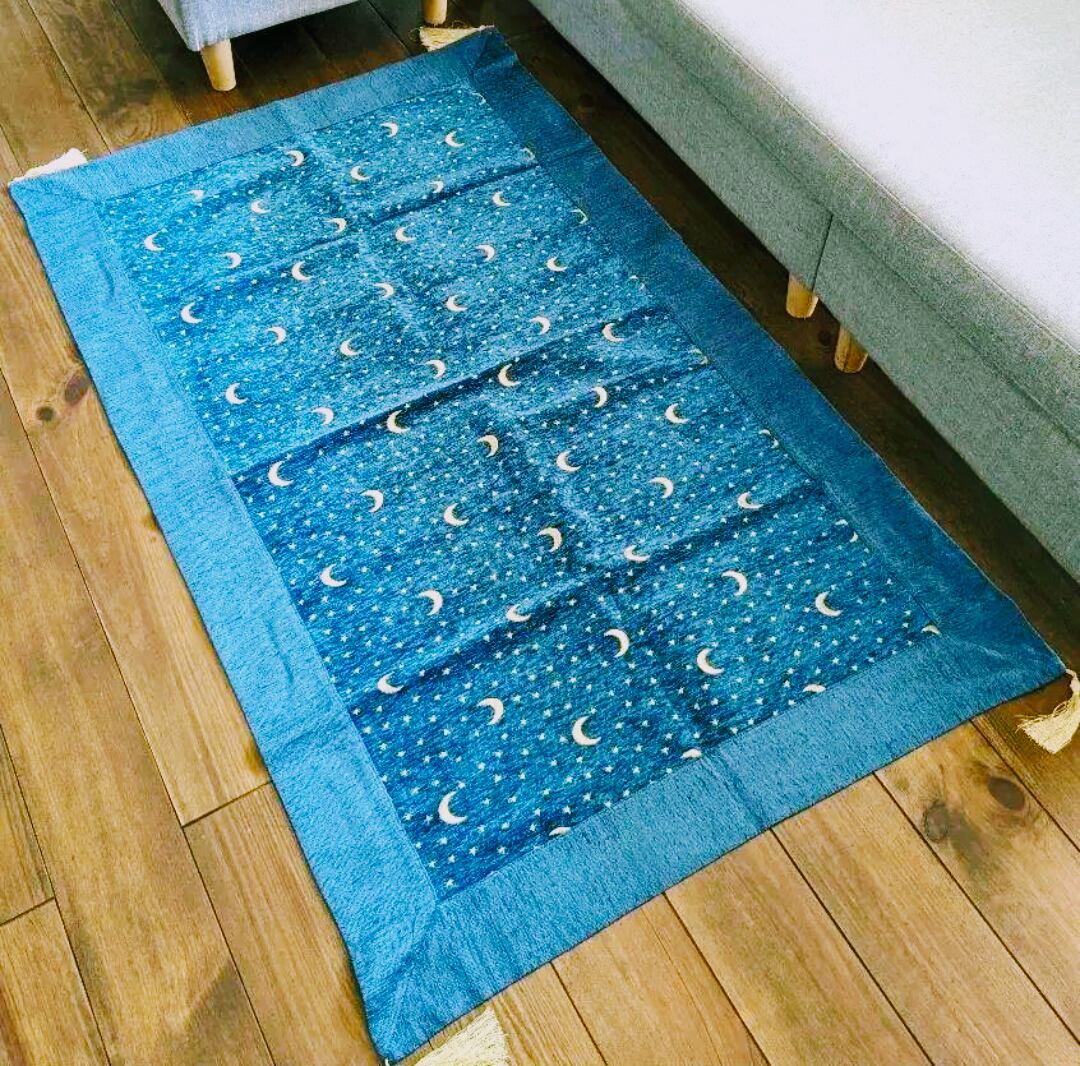 手織りだけでなく機械織りテキスタイルのクオリティも高いと言われるトルコから、月と星をモチーフにした織柄のモダンな雰囲気のラグマットが届きました。
