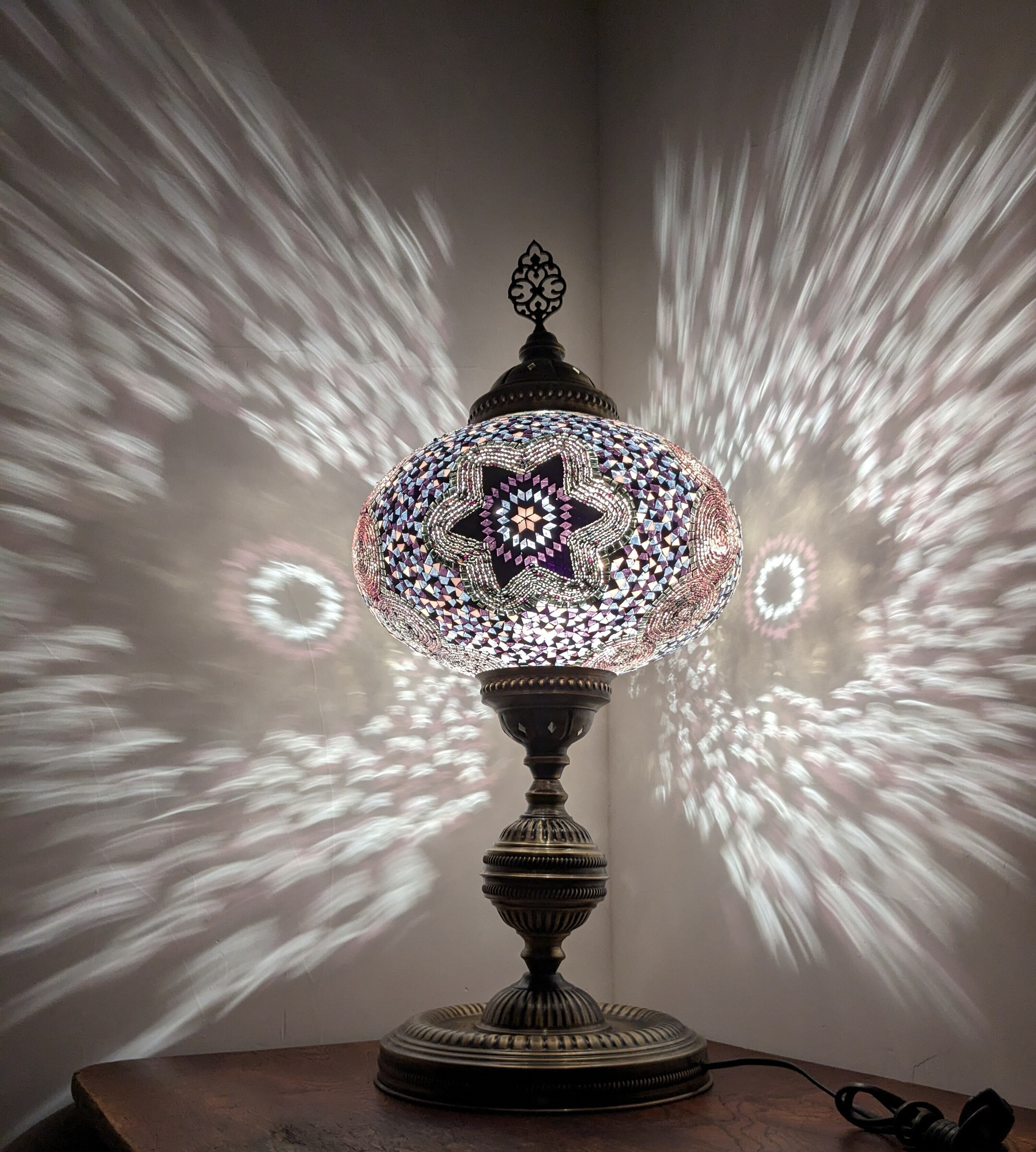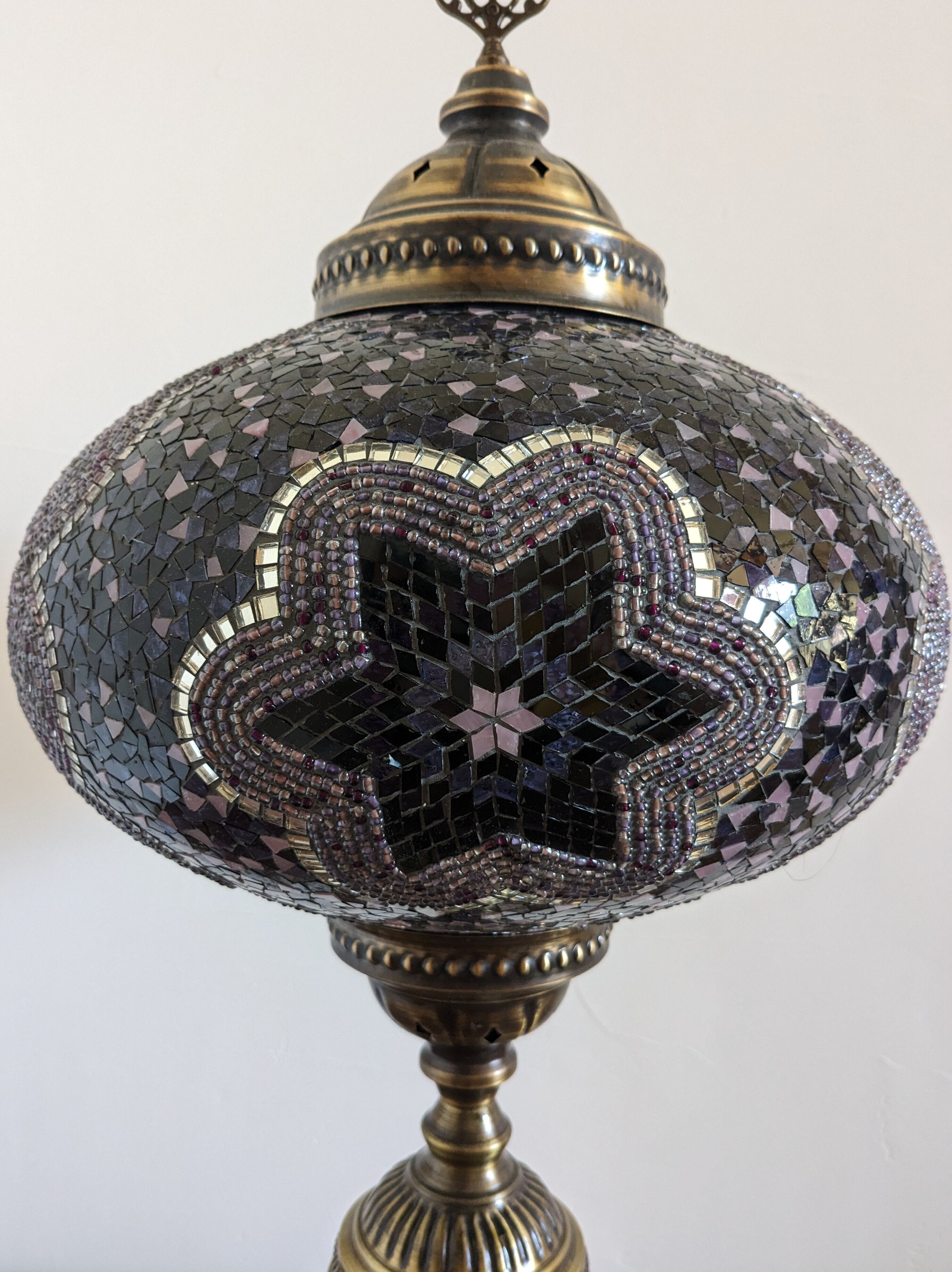 トルコ人女性のモザイクランプ作家さんが心を込めて制作した、ハンドメイドのスタンドタイプのランプです。