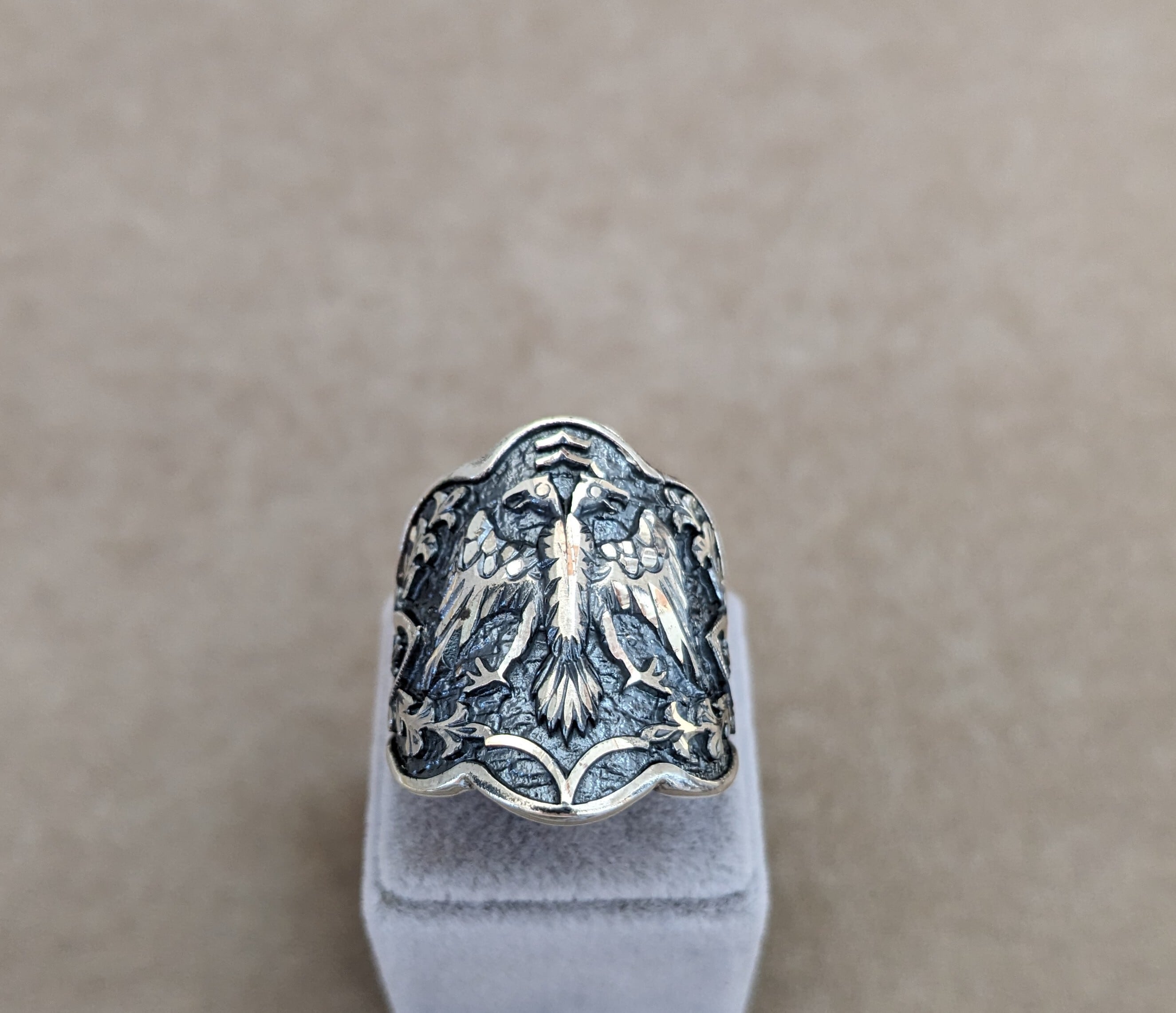 NEW*トルコ製 手彫りシルバー925リング( 双頭の鷲)