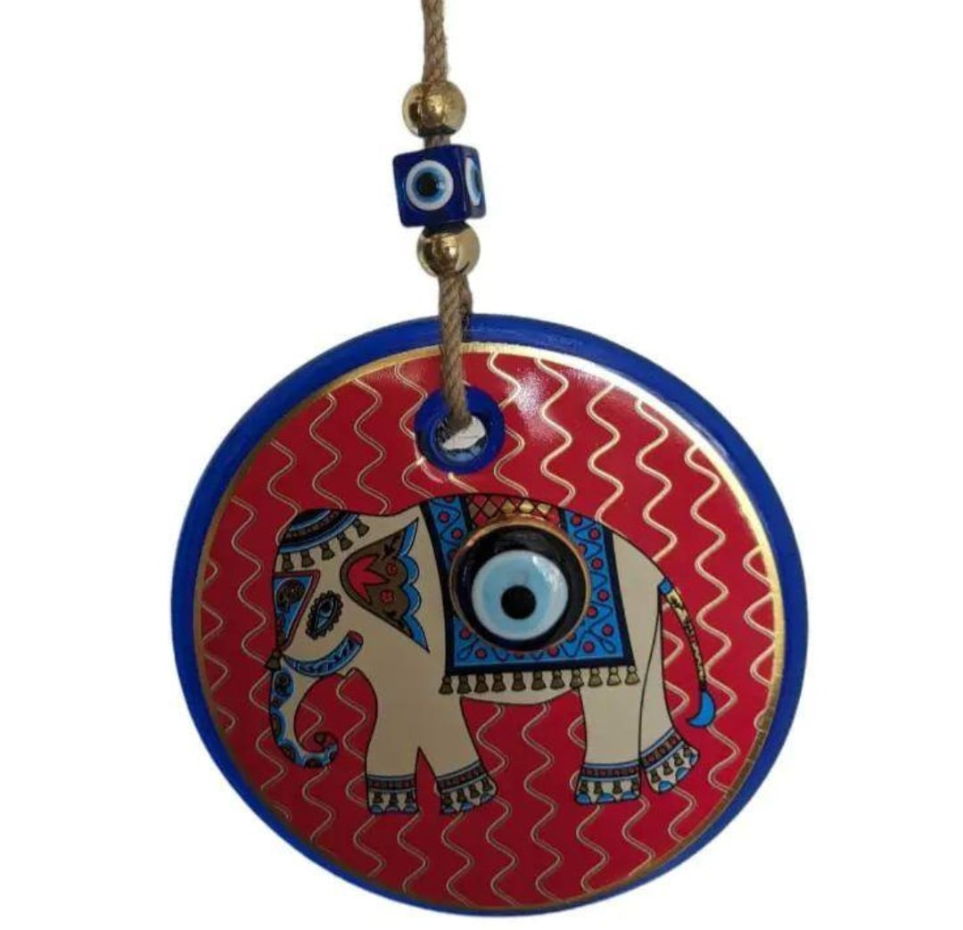 エキゾチックな象のモチーフがプリントされたガラスのナザールボンジュウオーナメントになります。