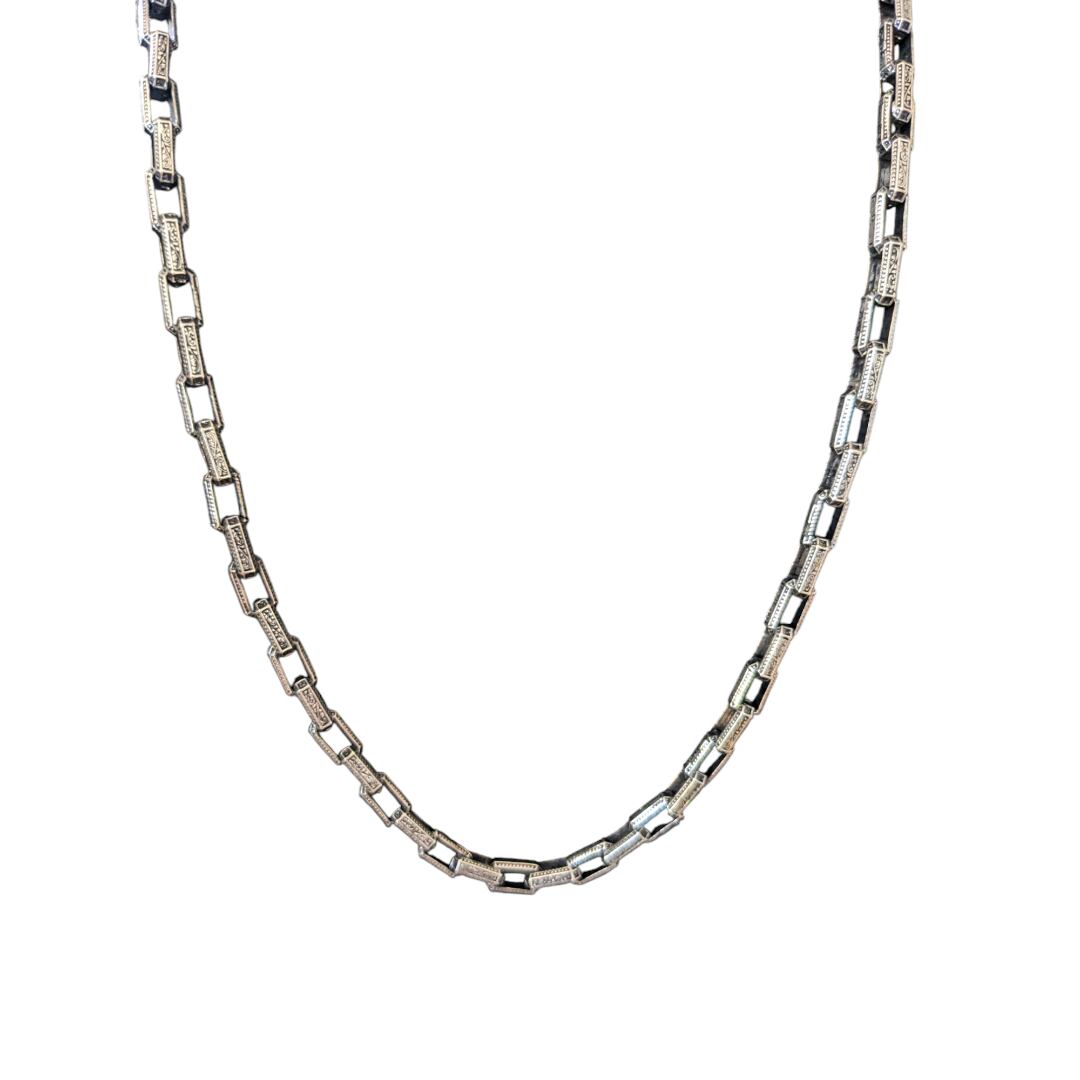 こちらはひとつひとつに細かな彫り柄が入ったスクエアチェーンのネックレスです。