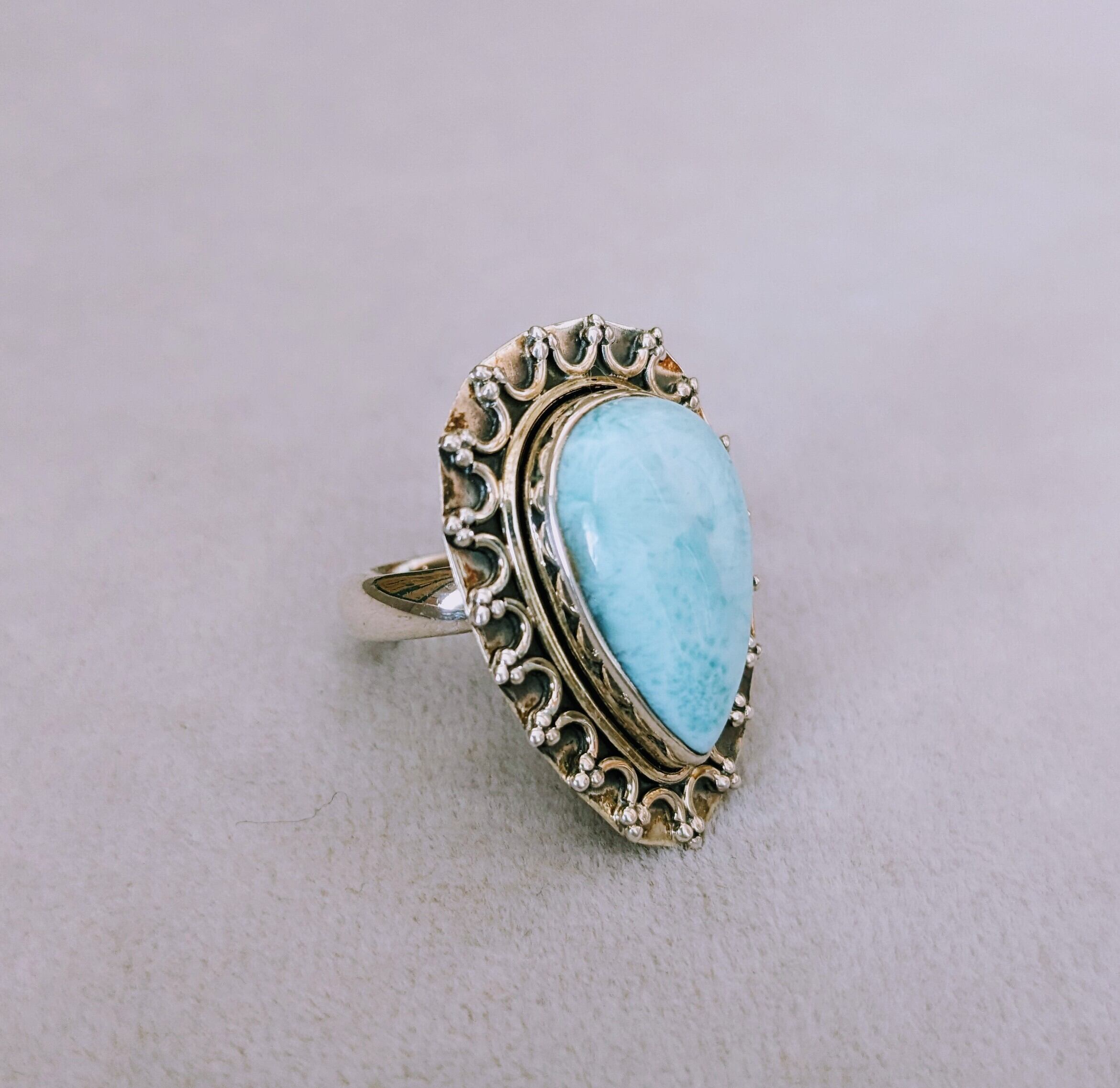 トルコ共和国イスタンブールの工房で創られた天然石ラリマーのSilverリングです。
