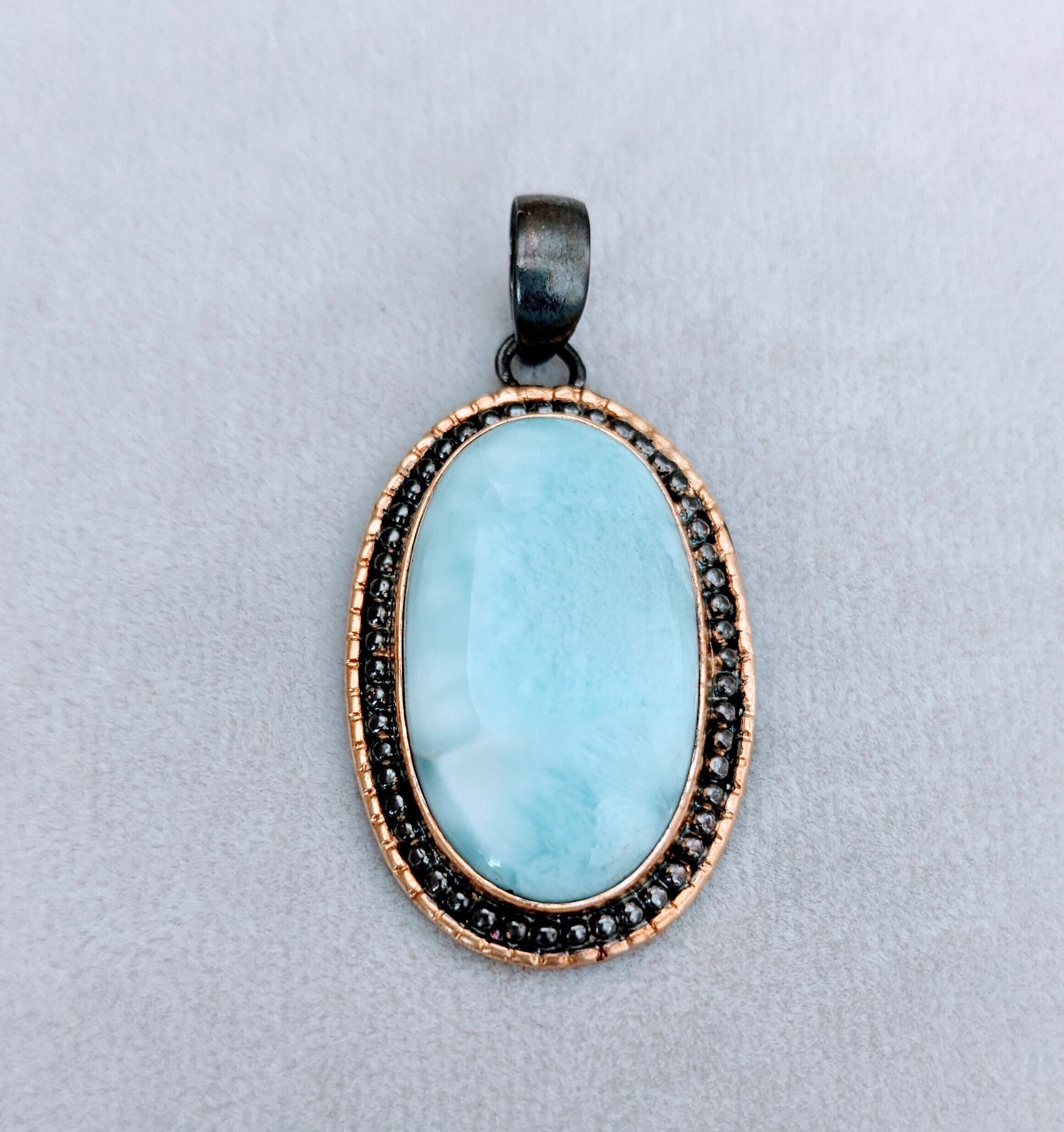 トルコ共和国イスタンブールの工房で創られた天然石ラリマーのSilverペンダントトップです。