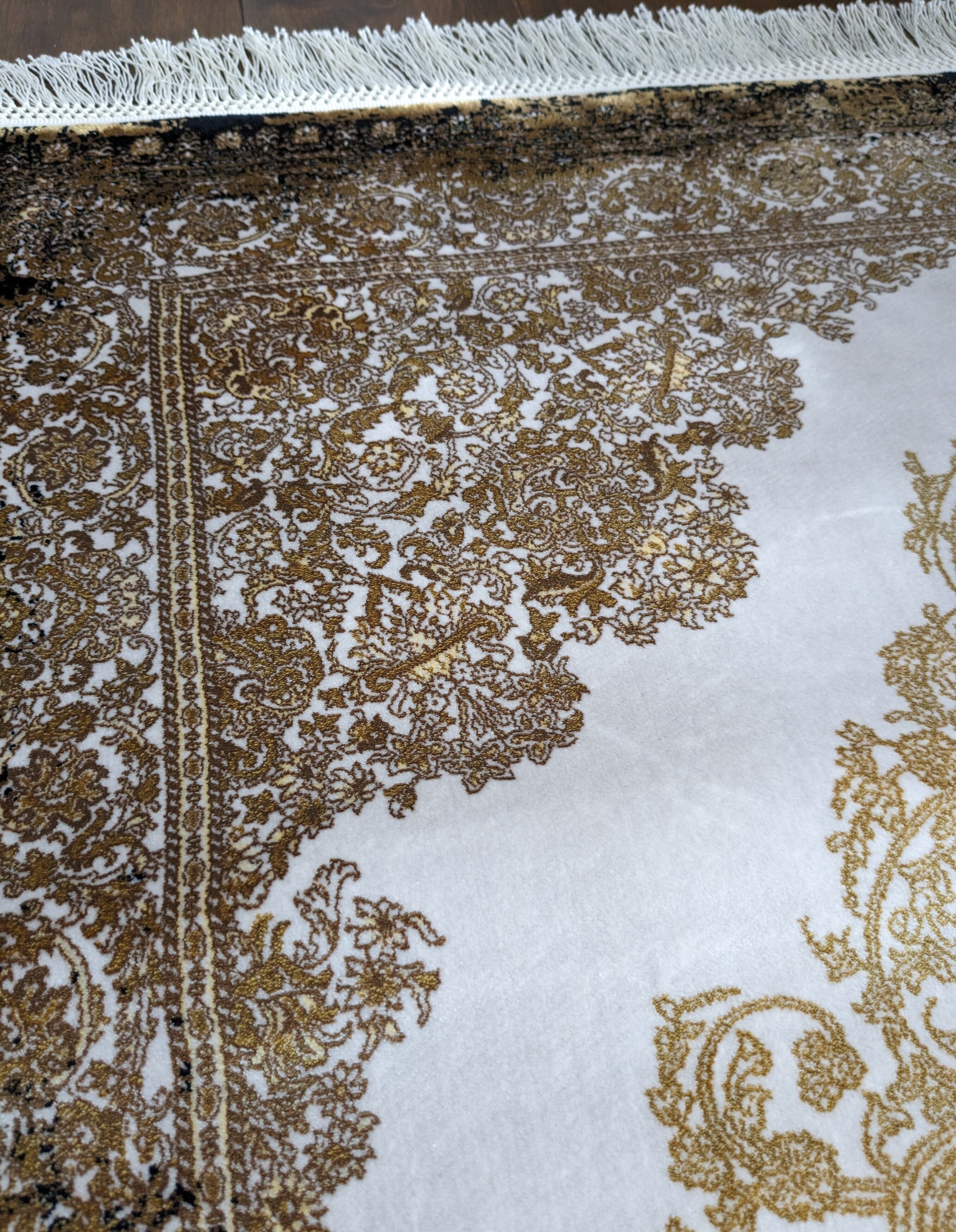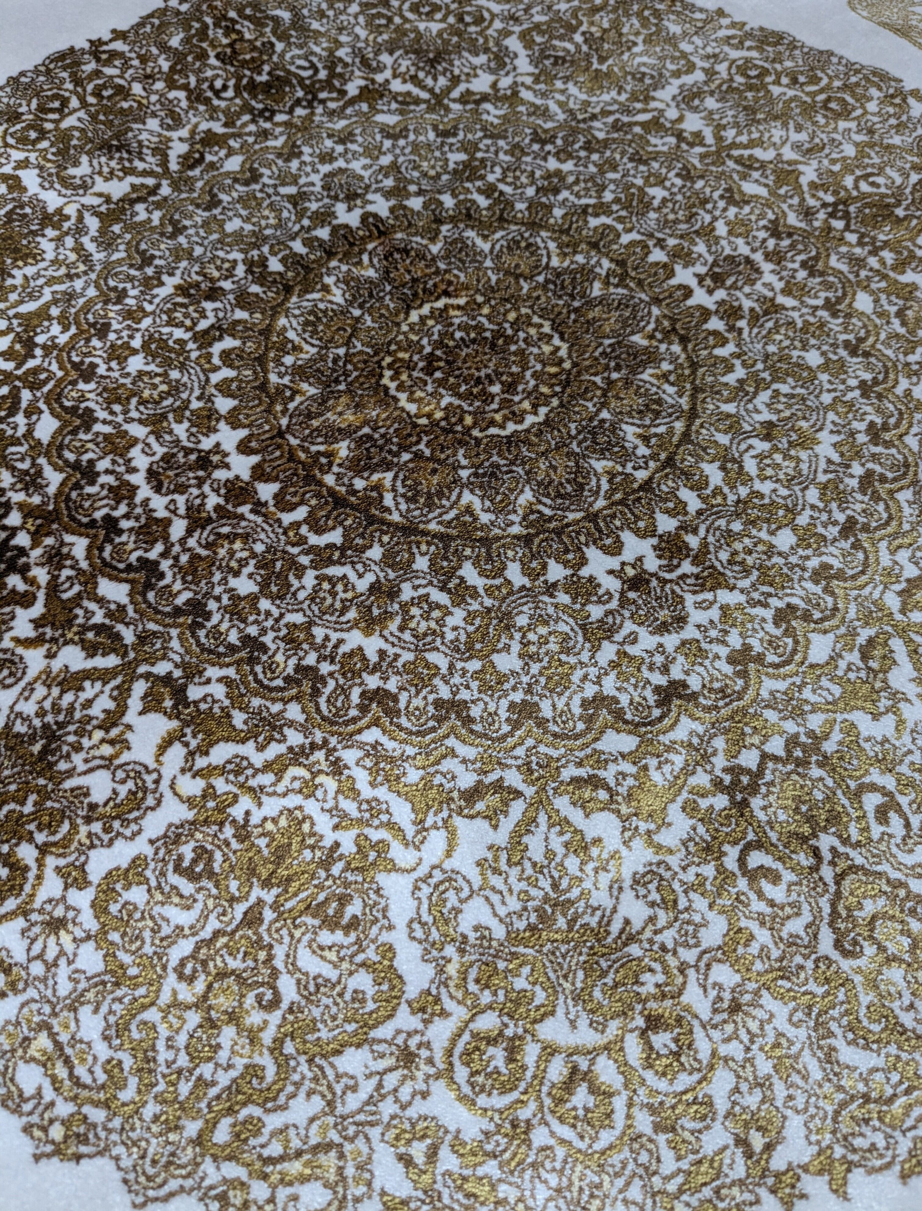 絨毯の折り目の細かさを示す指標(1平方メートルあたりの結び目の数)であるノット数が450万ノットですので、とても密度が細かく、繊細なデザインになっております。