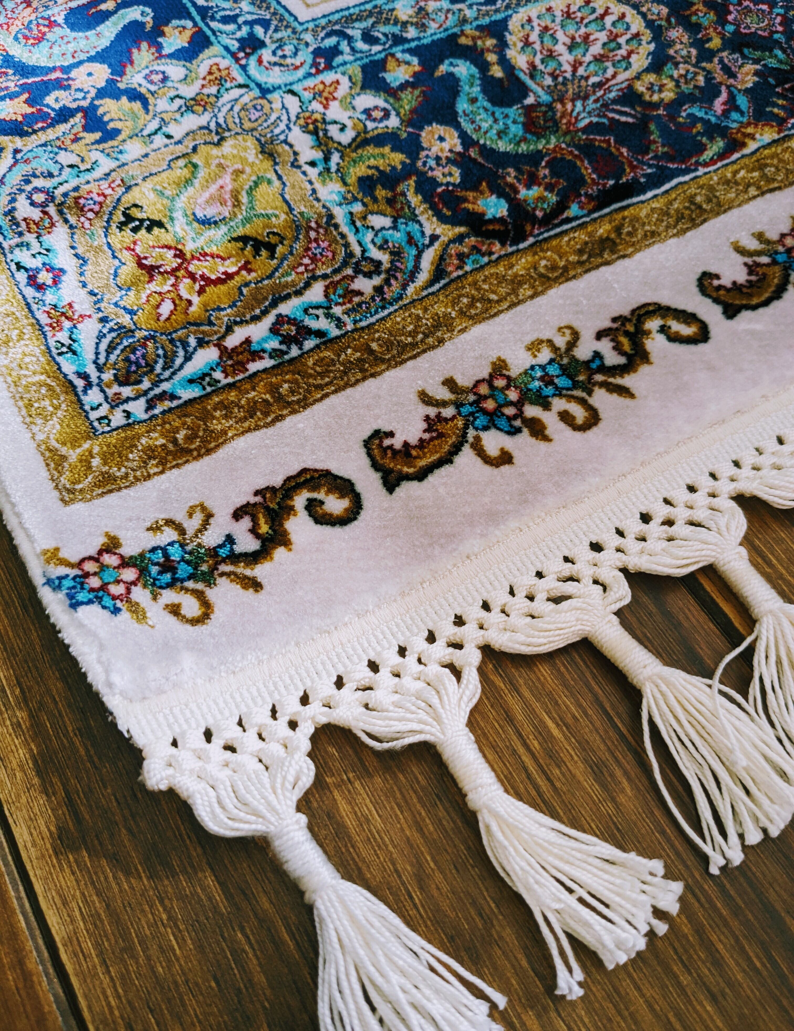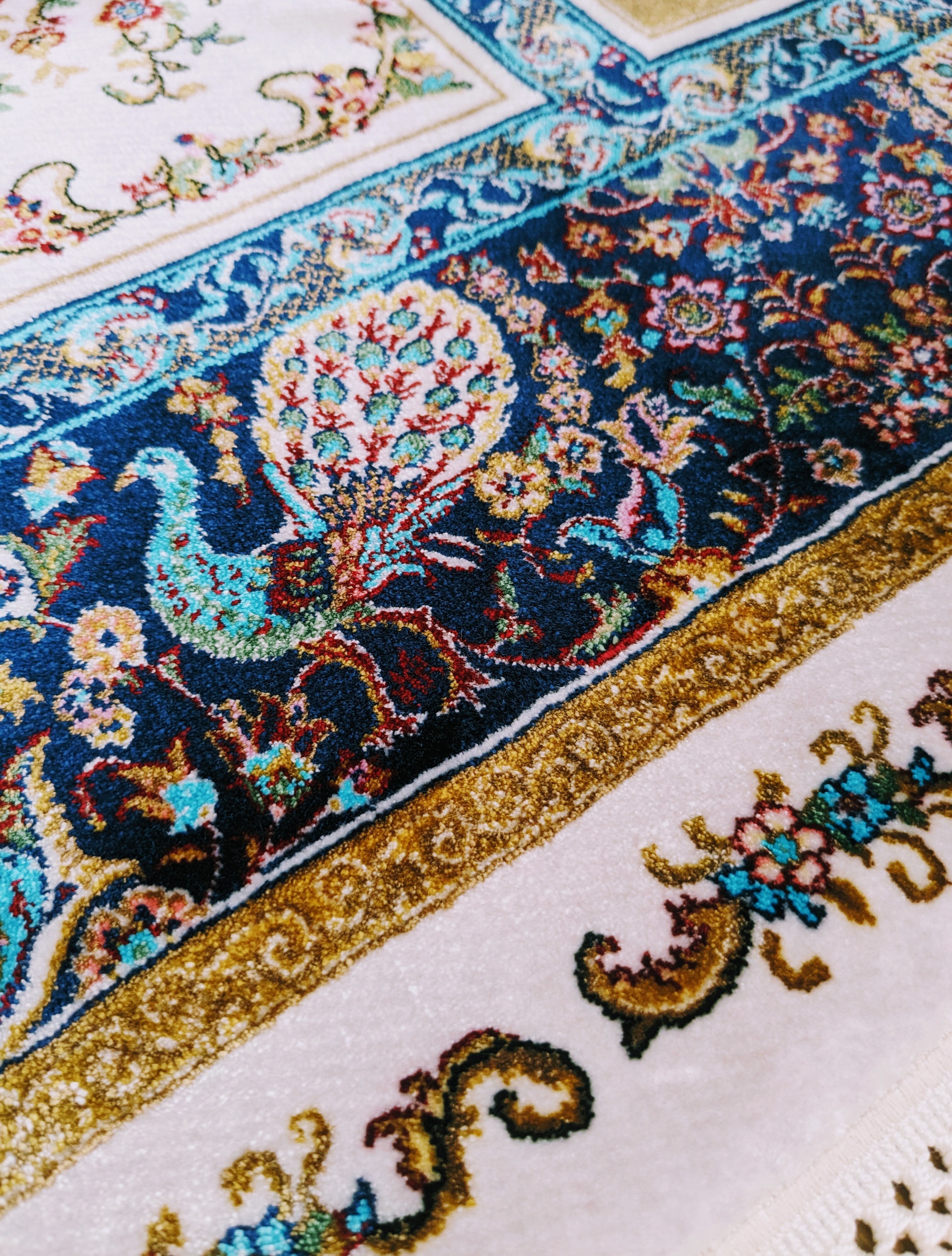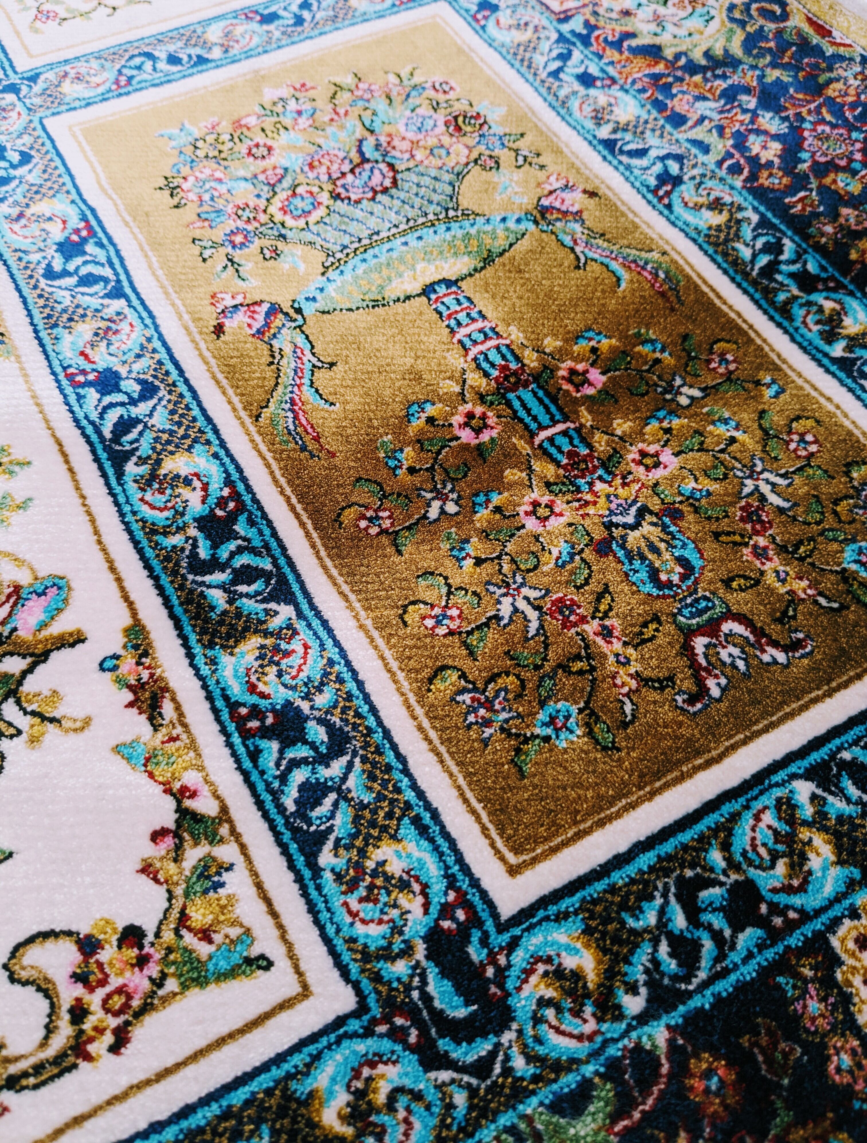 絨毯の折り目の細かさを示す指標(1平方メートルあたりの結び目の数)であるノット数が450万ノットですので、とても密度が細かく、繊細なデザインになっております。