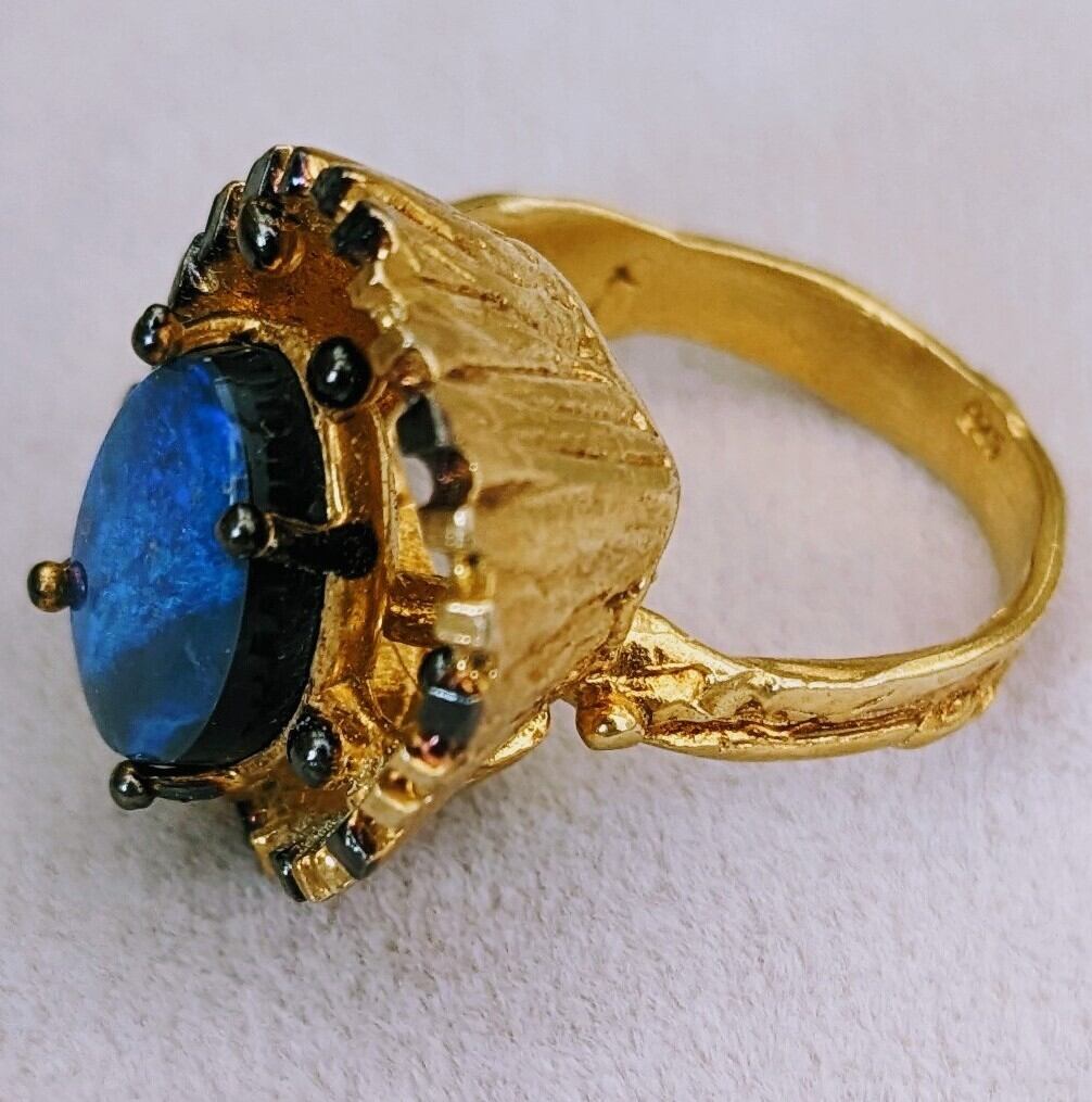 シンプルなブラックオパールを囲むようなリング部分にはブラックロジウムと18金のコーティングな施されゴージャスですがアンティークのような落ち着きも感じられるスタイルのリングです。