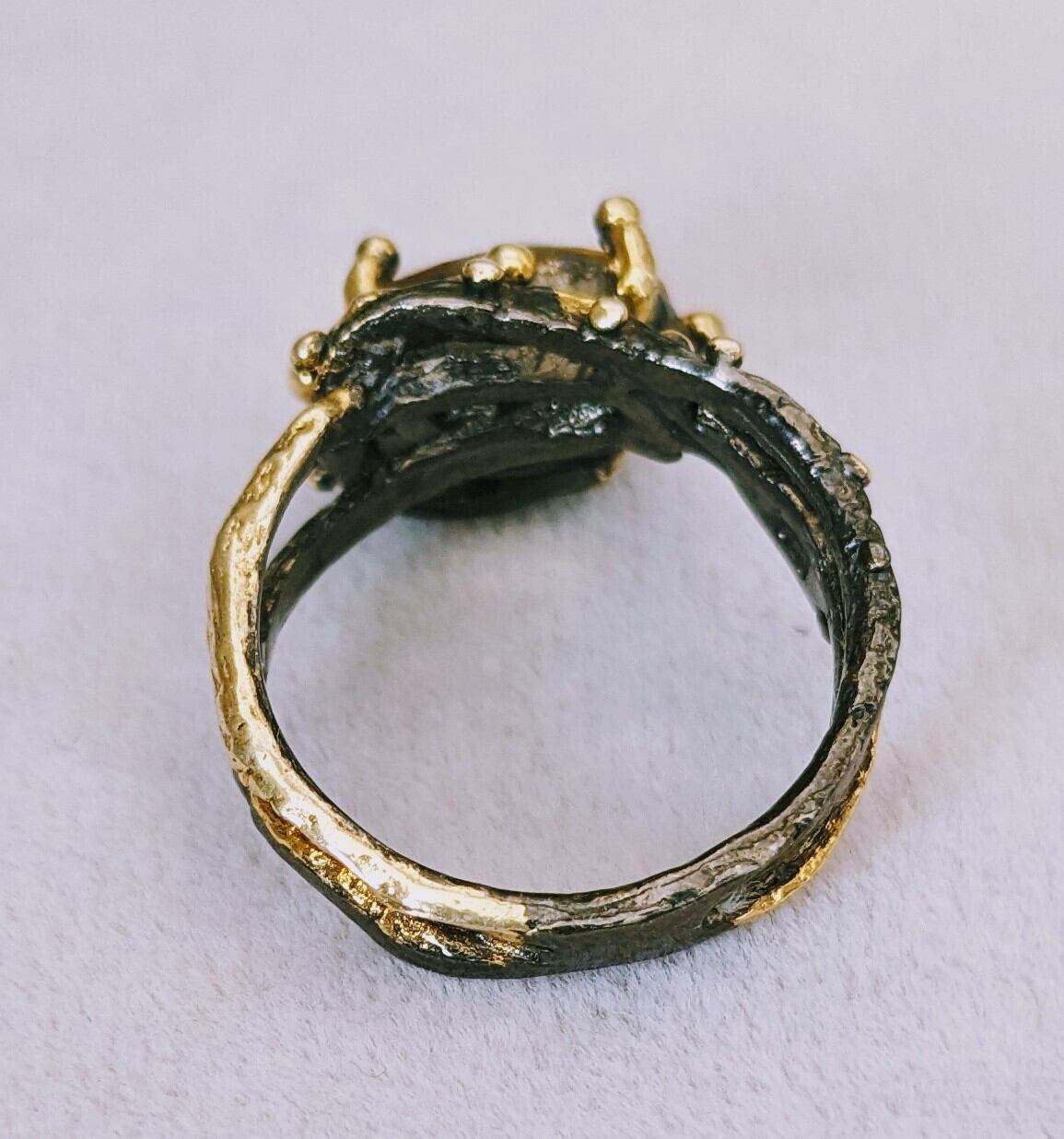 リング部分は925シルバーにブラックロジウム、18金のコーティングが施されています。
