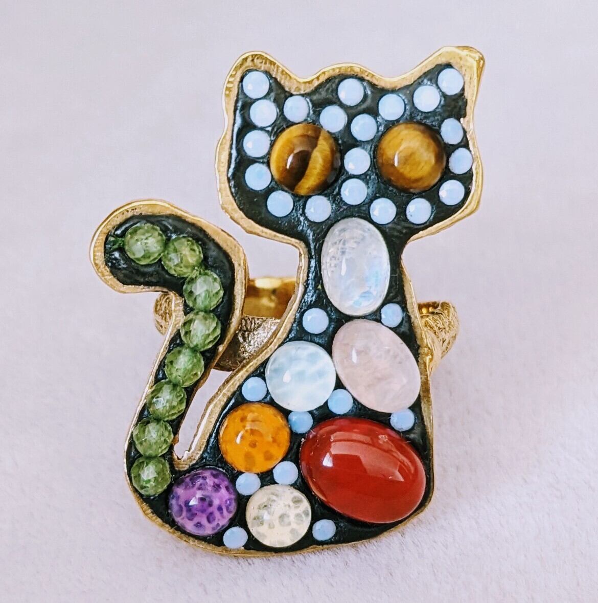 *NEW* トルコ製 ハンドメイド 天然石 リング シルバー925 [ネコ]