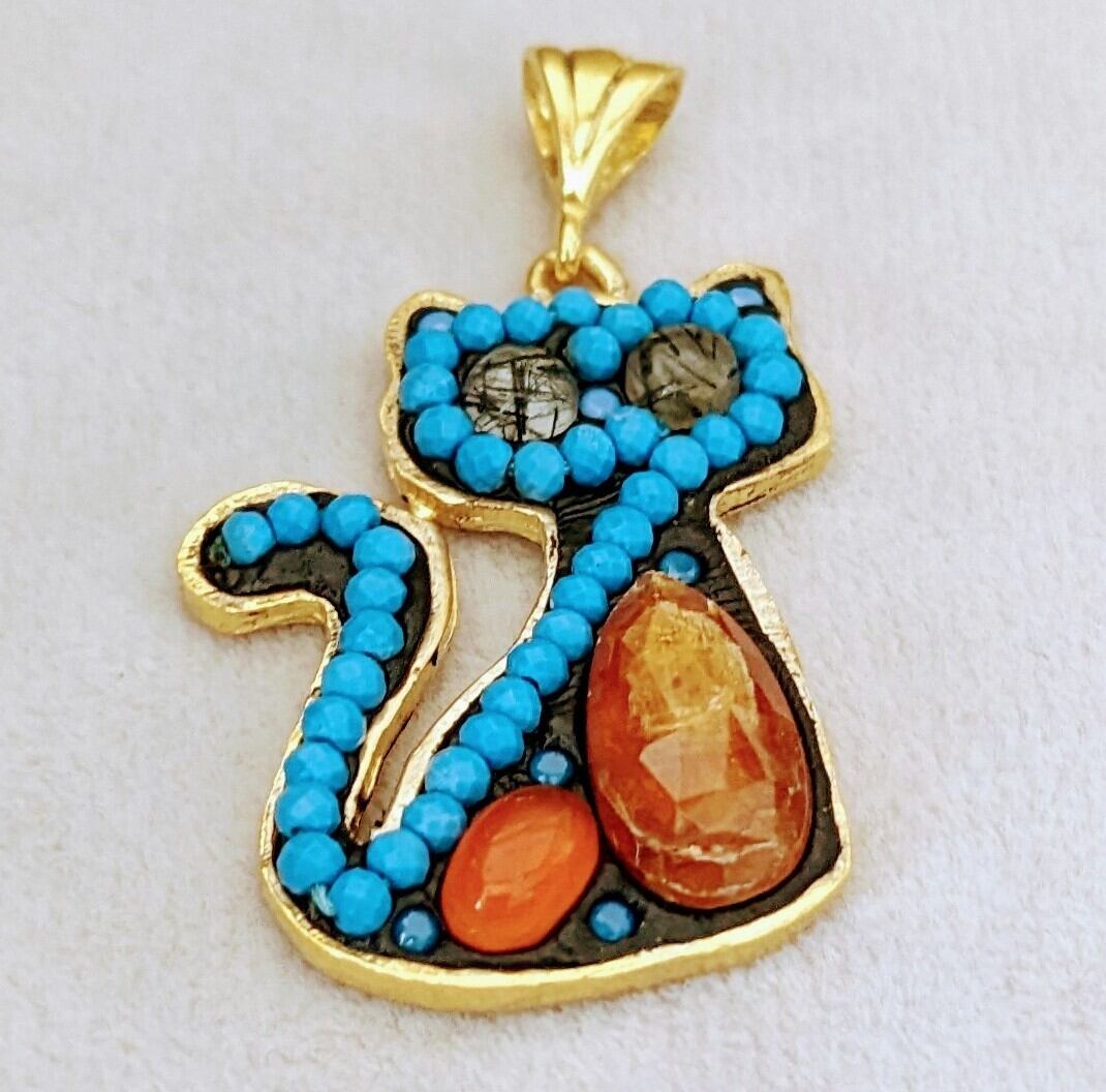 *NEW* トルコ製 ハンドメイド 天然石 ペンダントトップ シルバー925 猫
