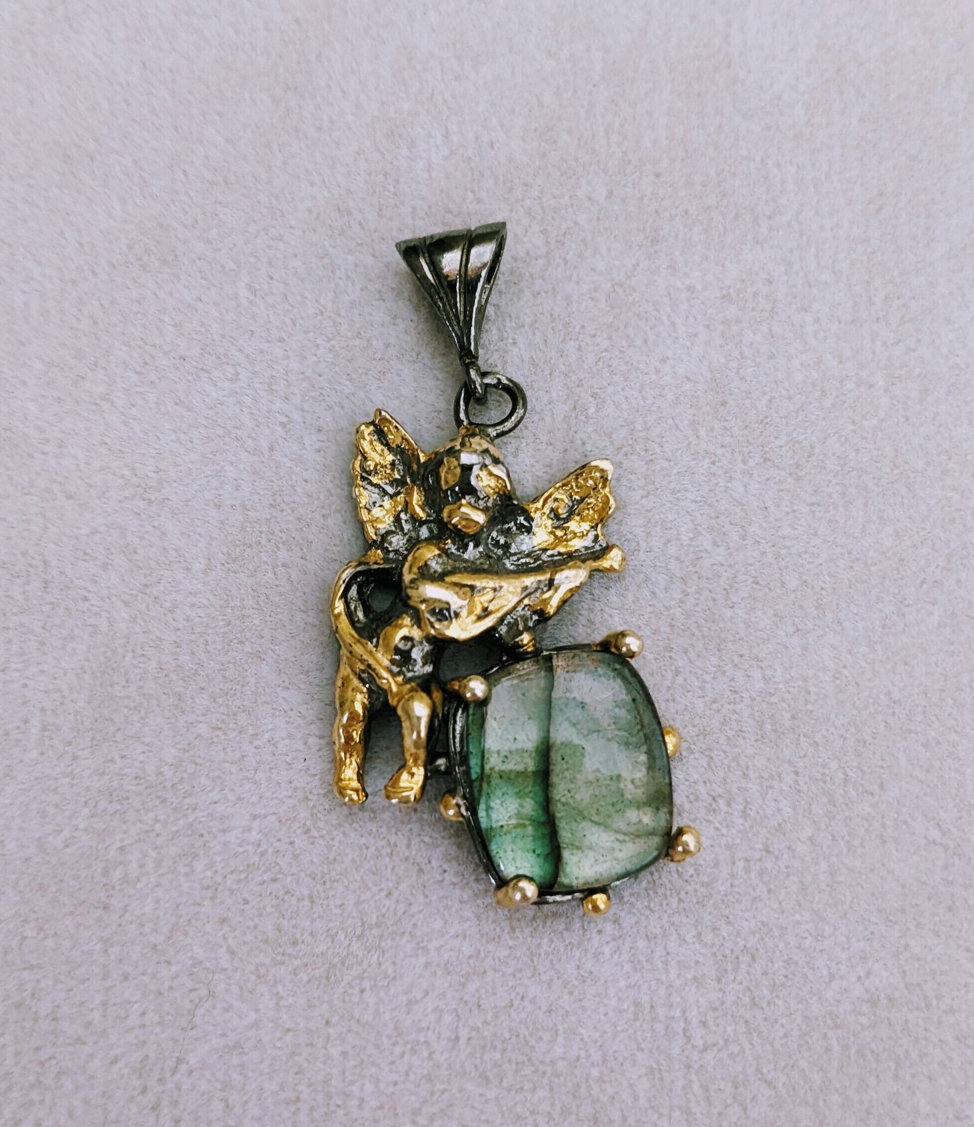 角度によって違う表情を見せてくれるラブラドライトに天使が腰掛けているようなペンダントトップは眺めているだけで心を穏やかにしてくれる素敵な雰囲気です。