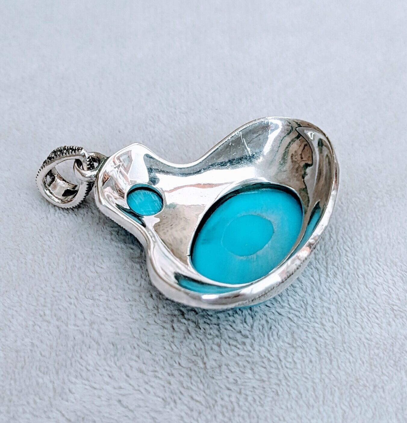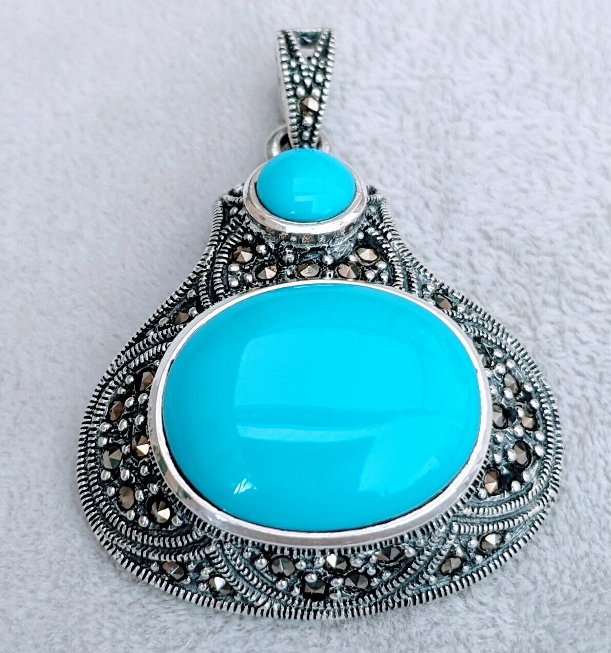 トルコ石(練り物)とマーカサイトを使ったシルバーのペンダントトップが届きました!