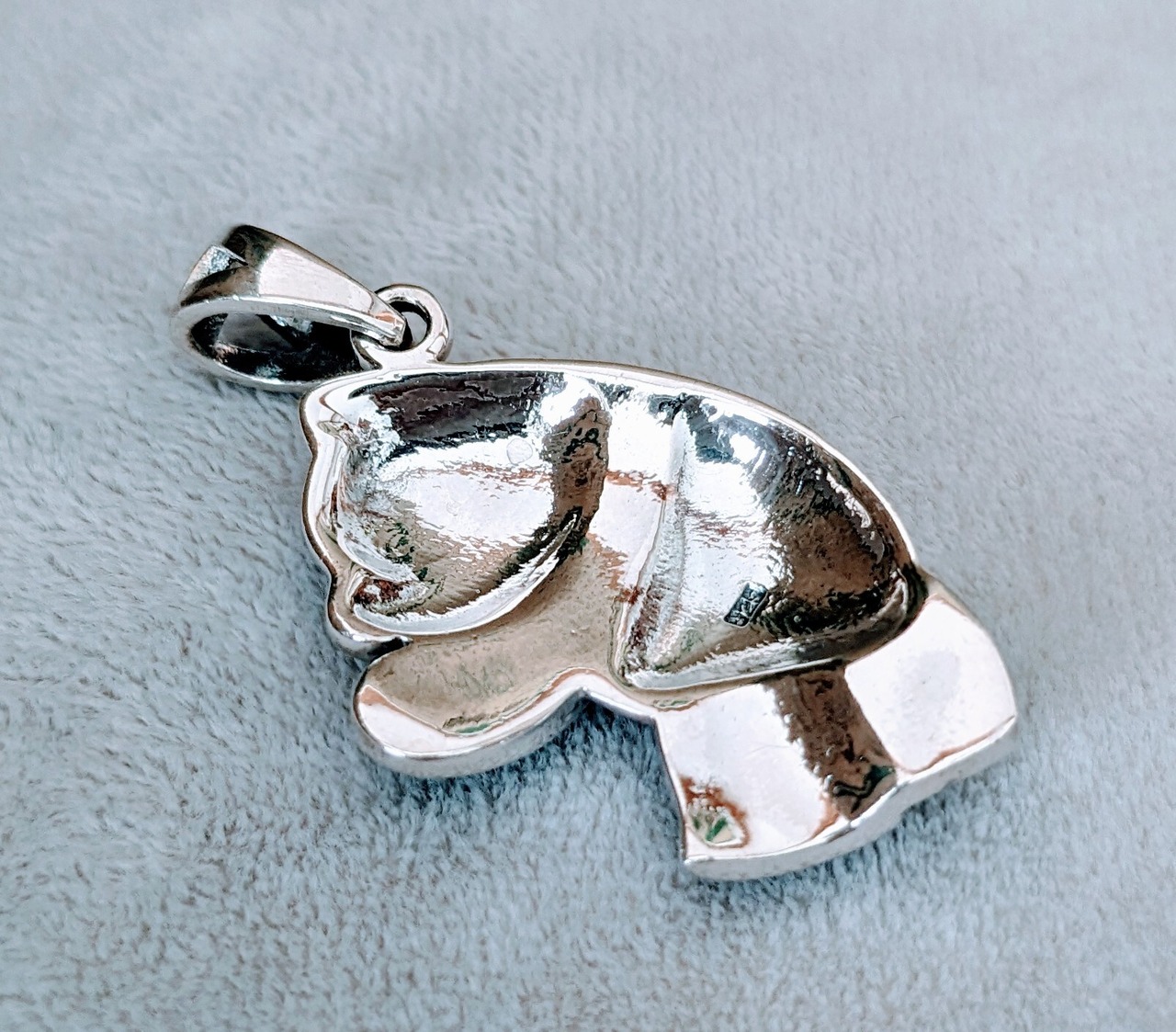モチーフは「可愛い」の代名詞のようなパンダですが、なぜか斜め後ろからの姿で今にもコロンとなりそうな雰囲気がたまらなく愛らしいペンダントトップです。