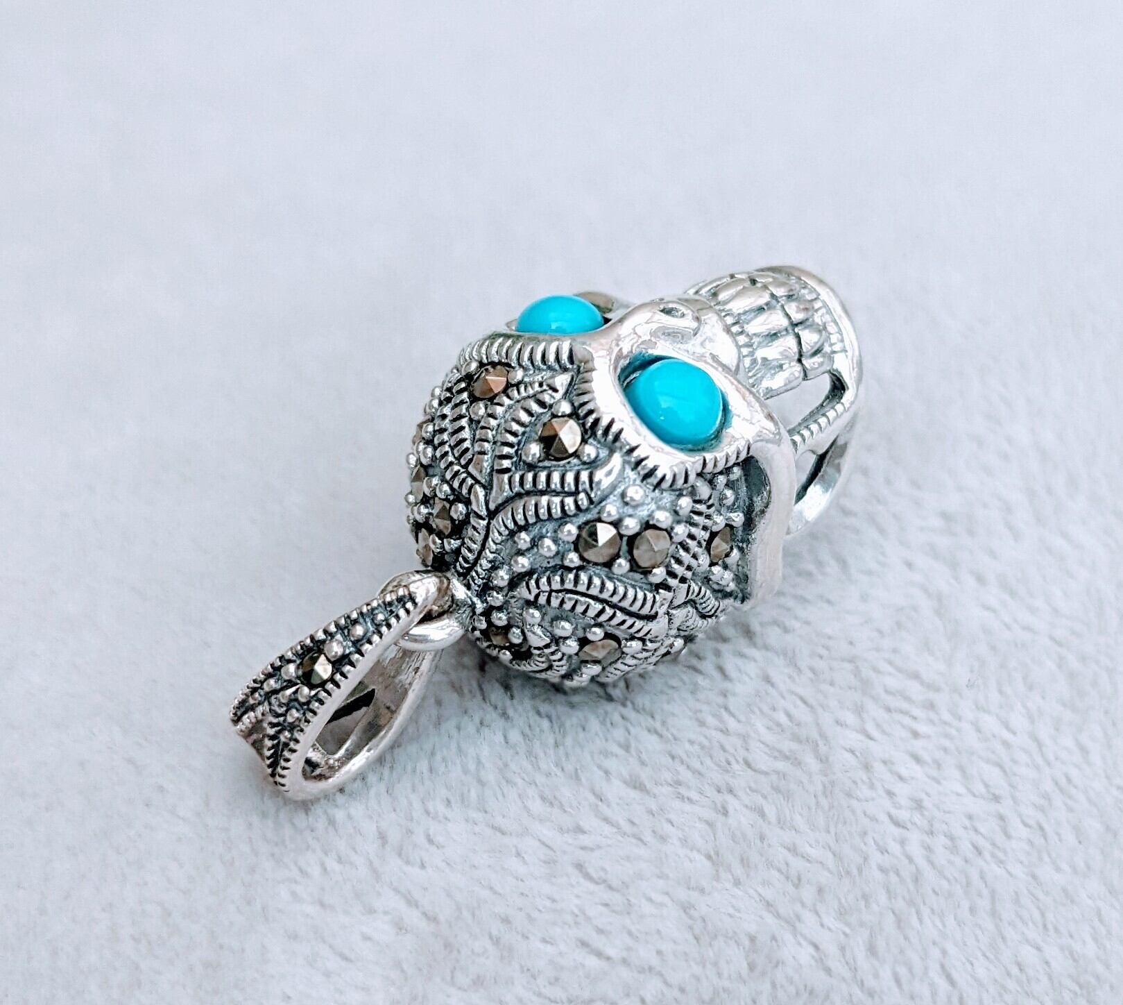 925silverのドクロがモチーフでありながら目の部分にターコイズを使っていることで爽やかで少し可愛らしい印象のペンダントトップです。