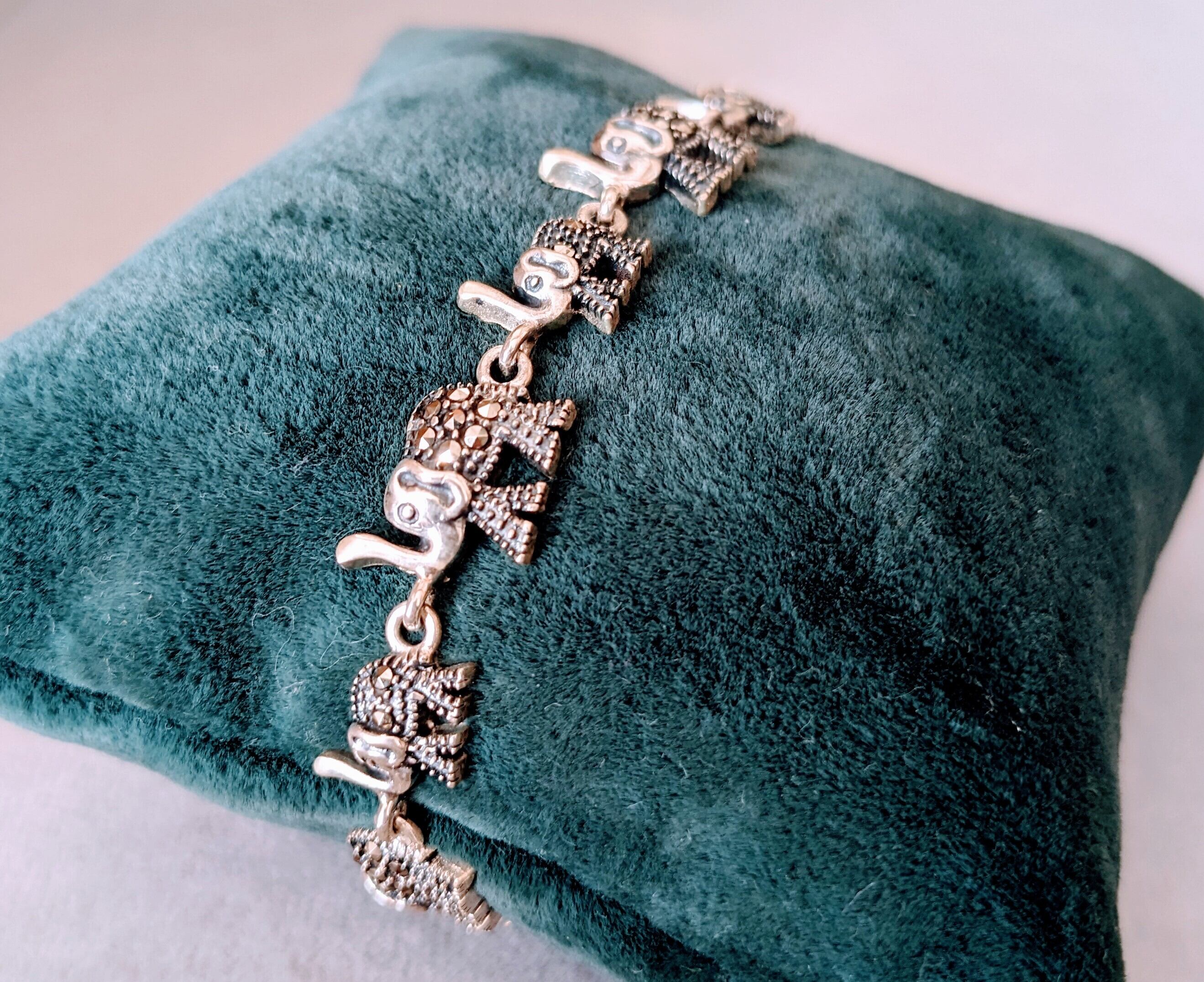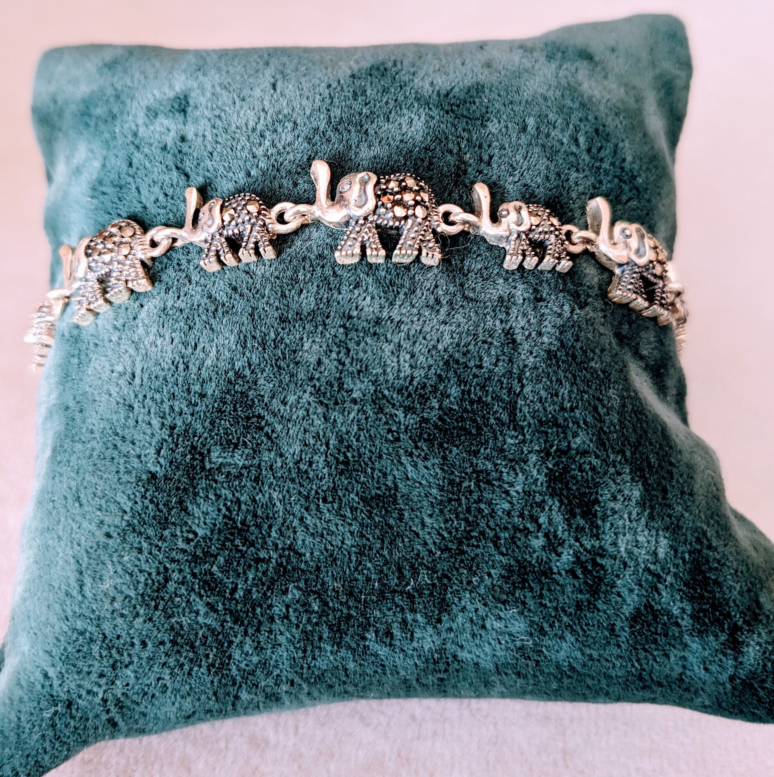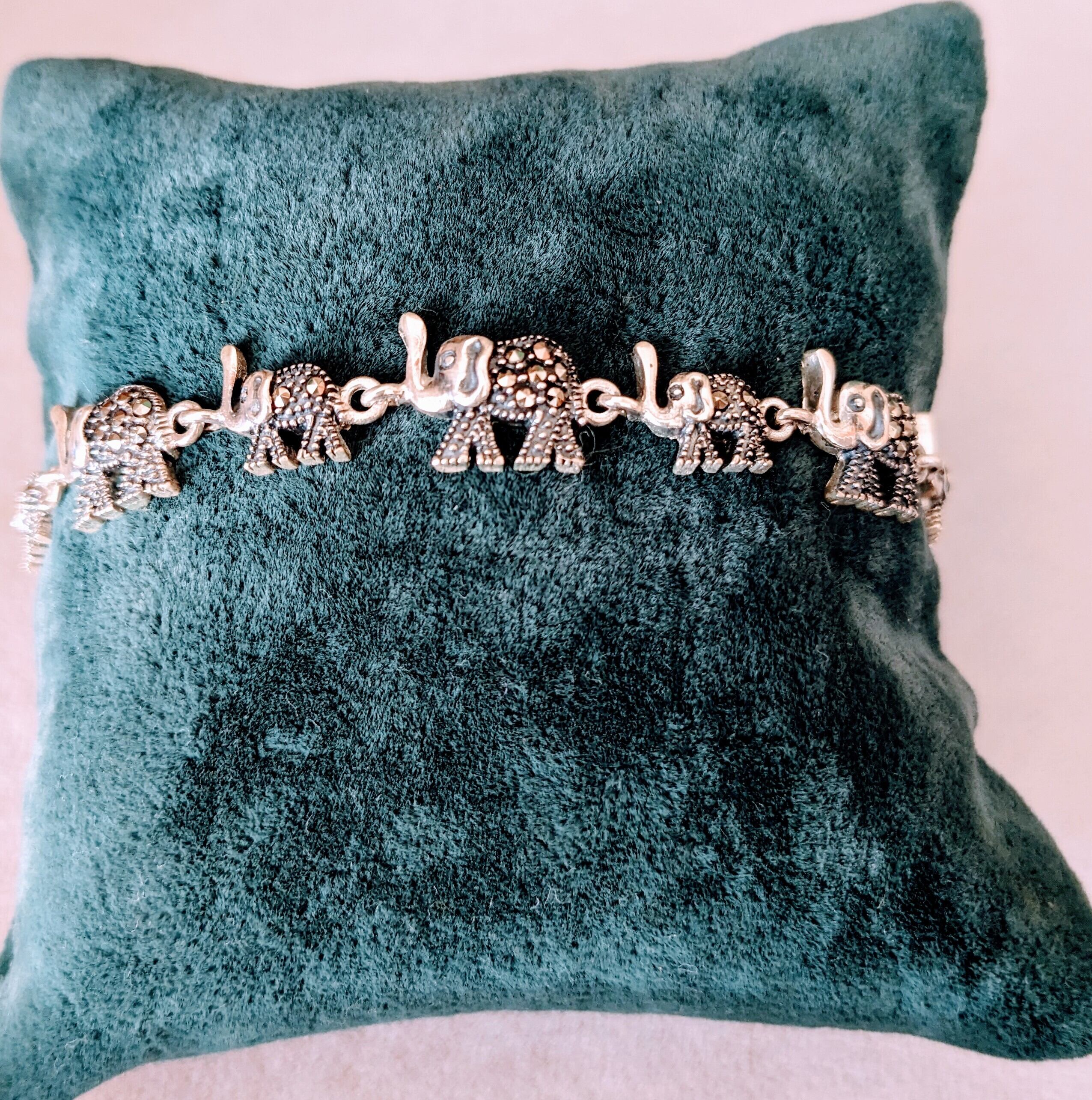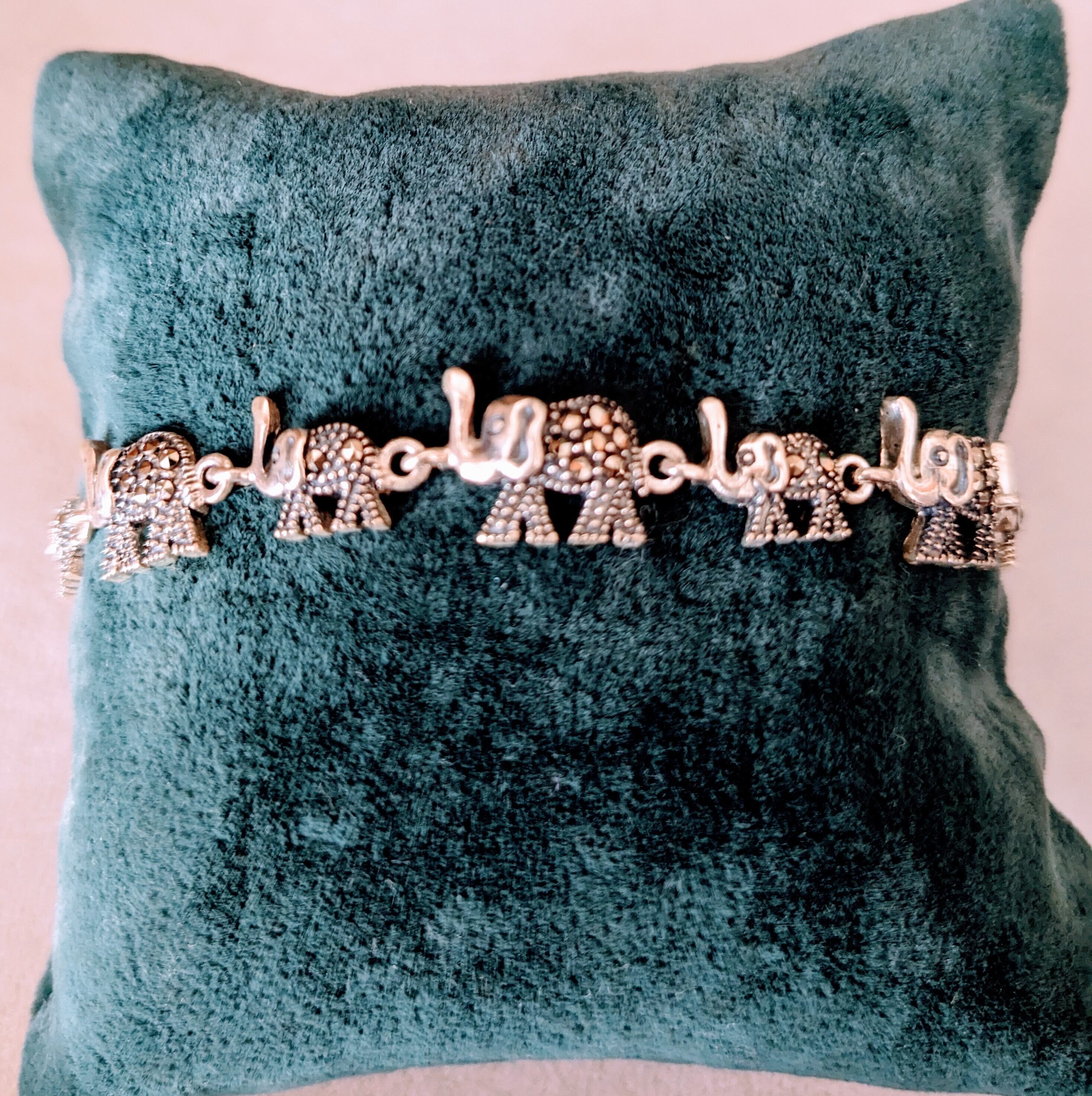 ぽってりとした姿で鼻を持ち上げている大小の象が仲間たちと並びながら歩いているような、とても可愛いらしいブレスレットです。