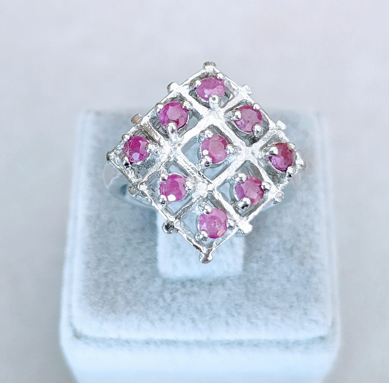 ひと粒ひと粒、職人さんが丁寧に作り上げたピンクパープルのルビーとシルバーの組合せはとても上品で女性らしい印象です。